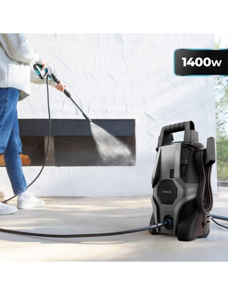 - Grande potenza da 1400 W per rimuovere lo sporco più difficile in modo rapido ed efficiente. Massima pressione di 105 bar. Ideale per terrazze, balconi, cortili e cordoli della piscina.