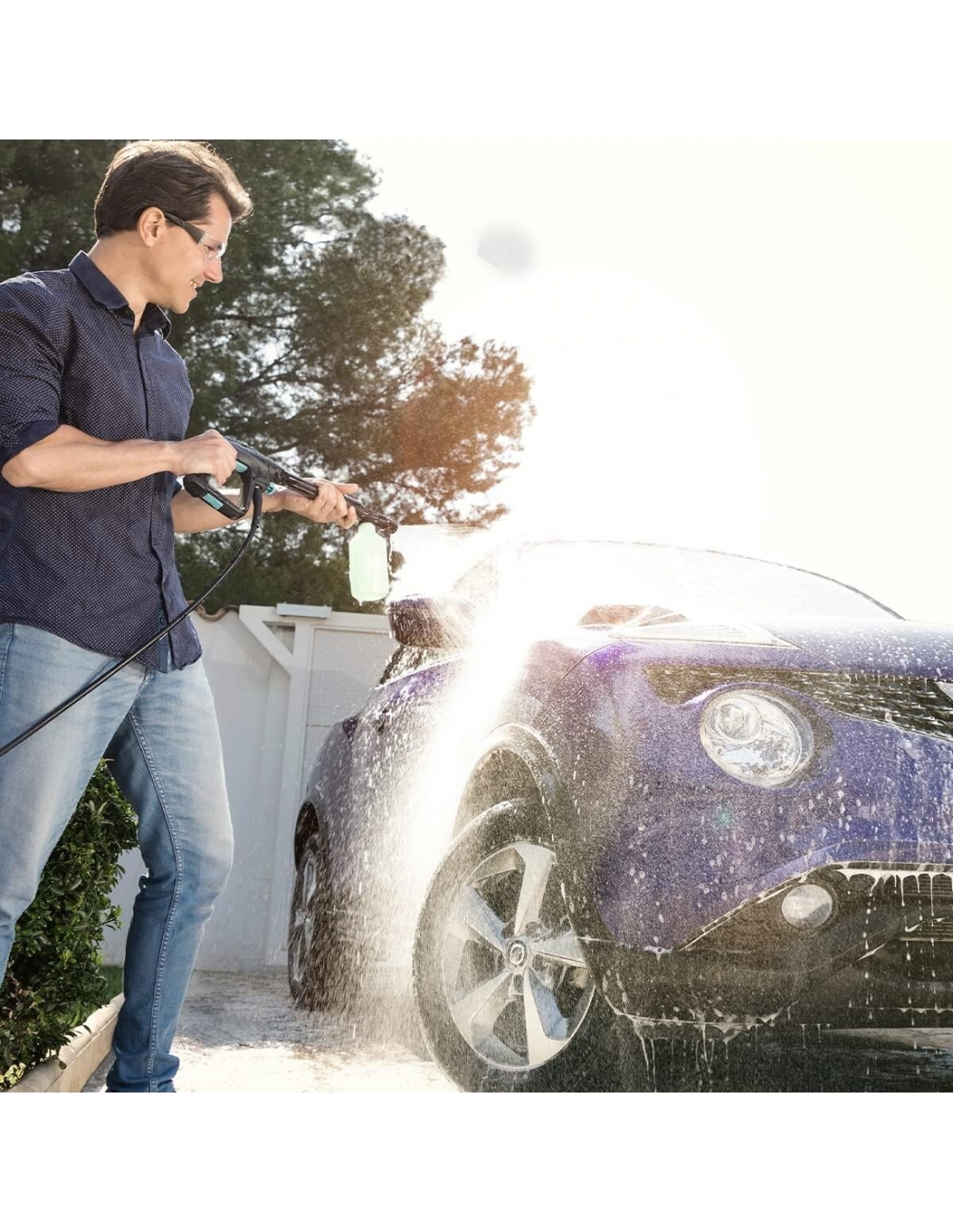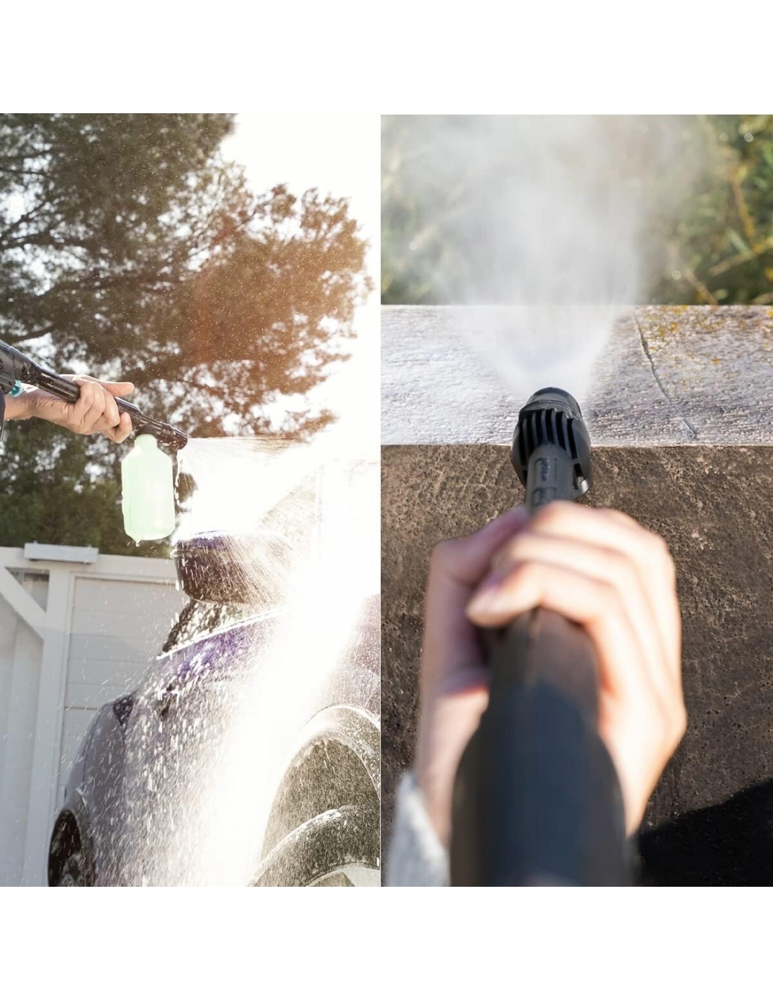 - Portata massima di 408 litri/ora che permette di pulire una superficie più ampia in meno tempo. Pulire l'auto o la terrazza è più veloce che mai. Bottiglia regolabile per sapone in schiuma regolabile.