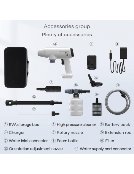 Bamboosang 21V Idropulitrice Professionale Portatile senza Fili 30Bar 435 PSI