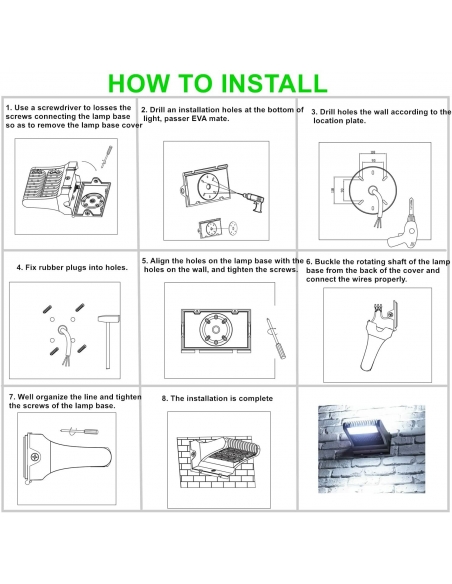 - Ben costruito e di lunga durata: questo apparecchio di illuminazione ben costruito ha un aspetto popolare e classico. Il suo alloggiamento in alluminio pressofuso resistente alla corrosione offre una migliore resistenza agli urti e durata. Con chip LED ad alta potenza e dissipatore di calore efficiente, questo pacchetto di lampade da parete a LED con fotocellule ti fornirà oltre 50.000 ore di servizio di illuminazione affidabile.
