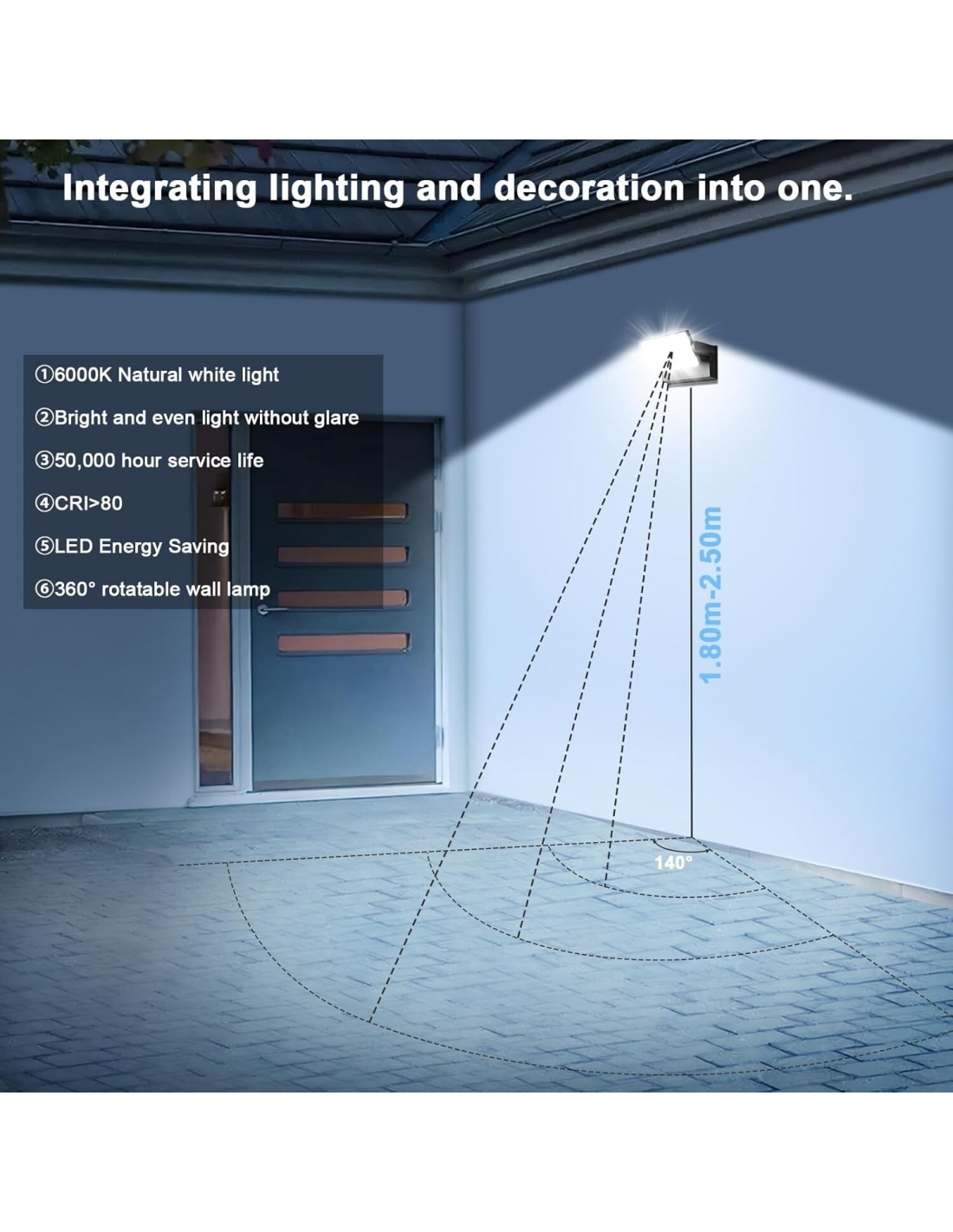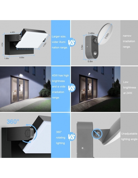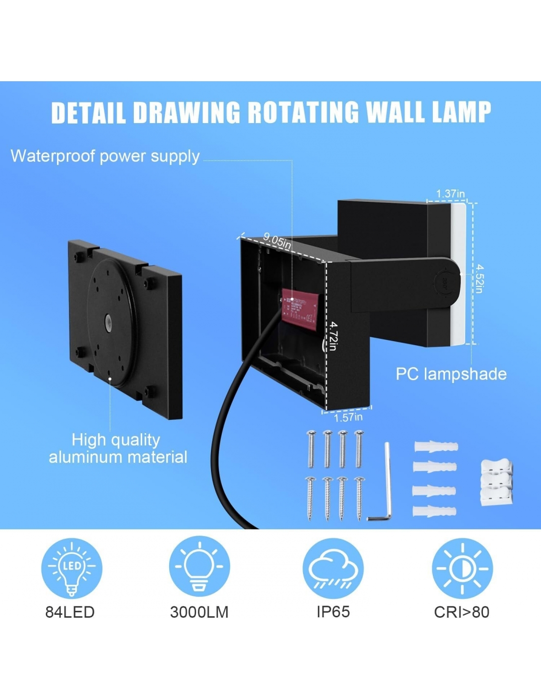 - Il pannello LED con 84 perline 2835 può ruotare di 360 °,applique da parete nero con un angolo di esposizione massimo di 140 ° -160 °, e una gamma di illuminazione massima di 30-50 metri.