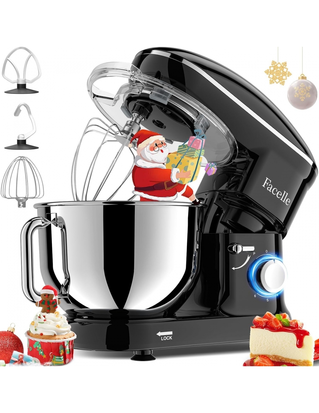 Facelle Impastatrice Planetaria Robot da Cucina 1500W Mixer Cucina 6,5 L Basso Rumore Multifunzione Impastatrice Professionale con Ganci Impastatore 6 Velocità, lavabile in lavastoviglie(Nero)