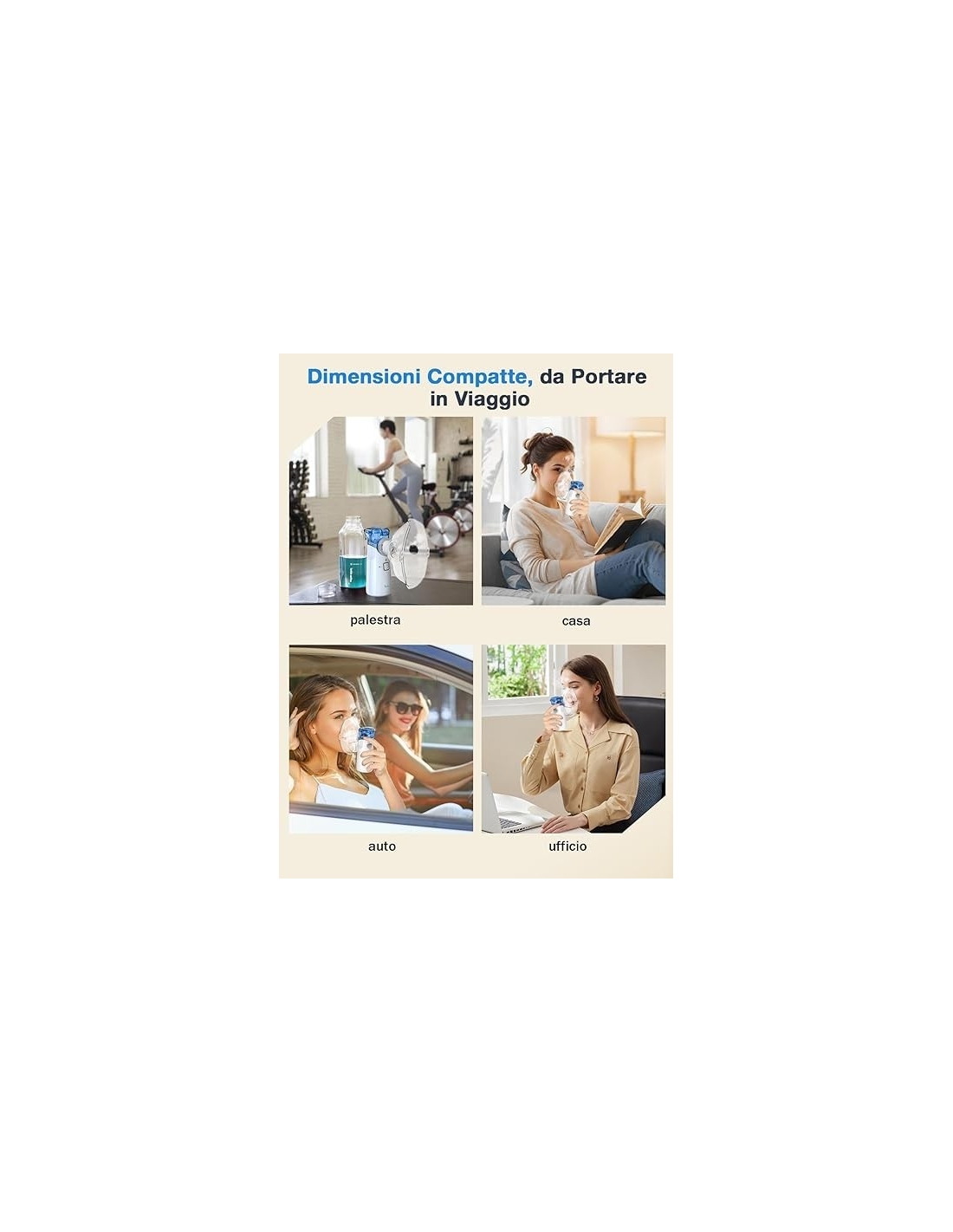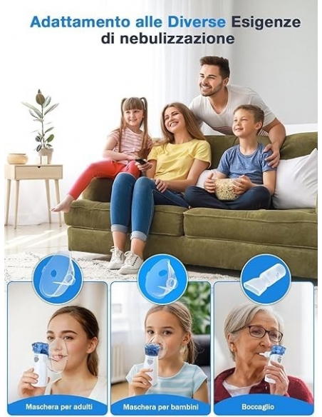 - [Adatto a tutta la famiglia]: Questo è un macchina aerosol adulti adatto a bambini e adulti o animali. Il dispositivo viene fornito con due mascherine (piccola per i bambini e grande per gli adulti) e un boccaglio, a seconda di come si desidera/necessità di inalare.
