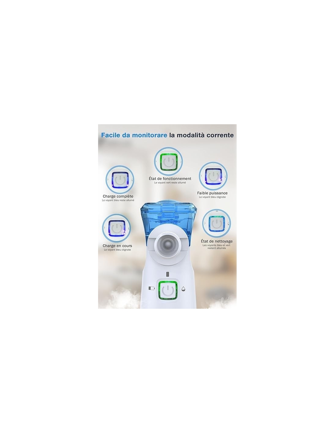 - [Nebulizzazione ad alta efficienza]: Il aerosol portatile silenzioso utilizza la tecnologia a ultrasuoni per creare un'utile nebbia delicata, che possono raggiungere rapidamente le vie respiratorie e i polmoni, facilitando l'assorbimento dei farmaci. Il design speciale di questo aerosol silenzioso riduce al minimo i residui di farmaco e, di conseguenza, lo spreco. Questa aerosol ultrasuoni è facilmente lavabile e pronta per il successivo utilizzo.