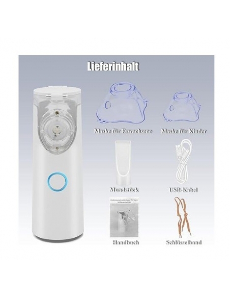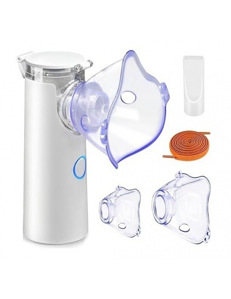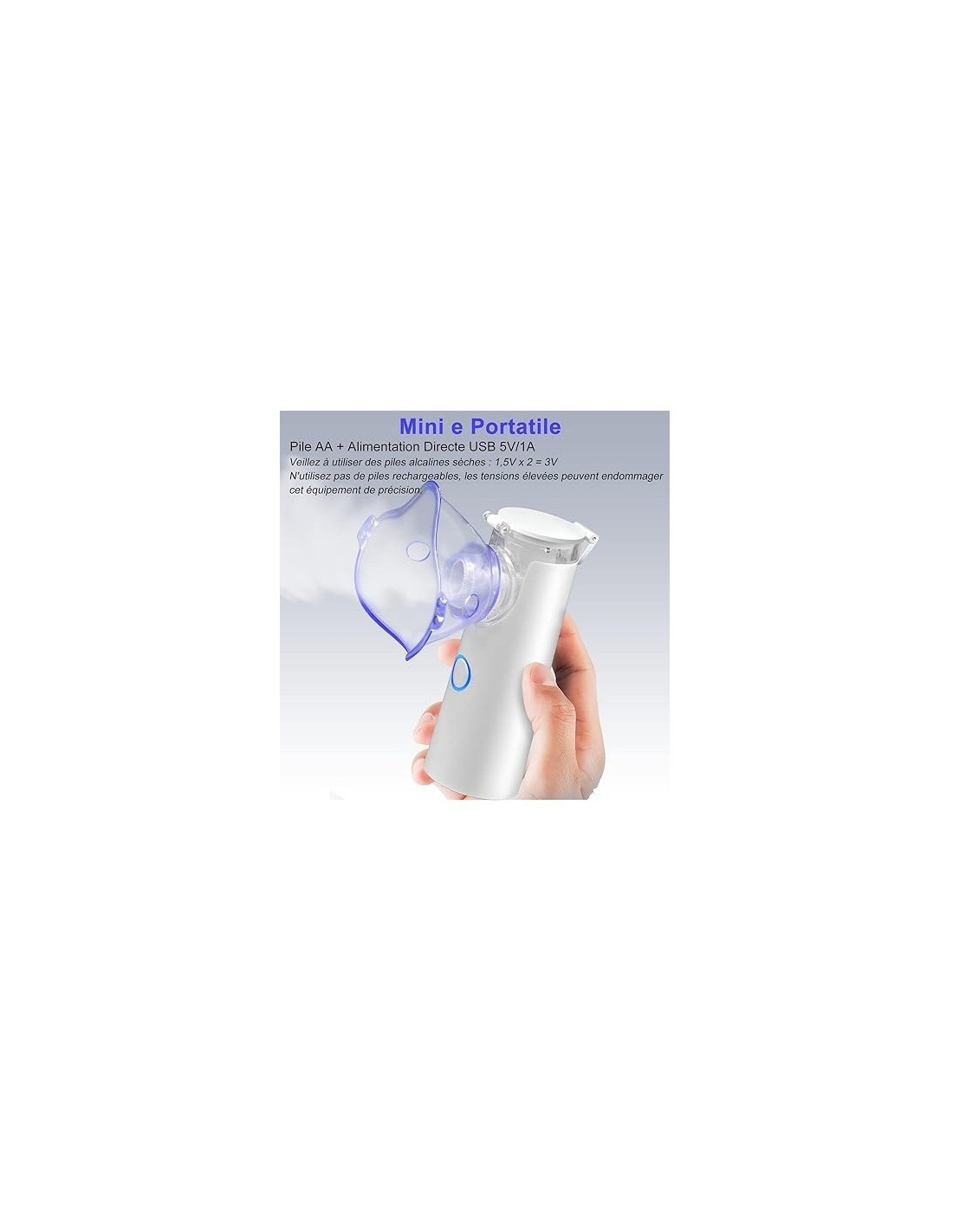 Aerosol Portatile per Adulti e Bambini, Nebulizzatore Aereosol Silenzioso e veloce per Casa e Viaggio, Mesh Areosol Ultrasuoni, Alimentato a Batteria AA e 5V1A Cavo USB (Bianco)