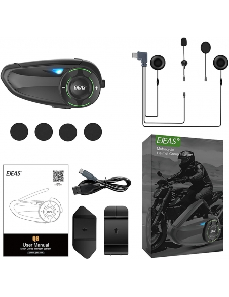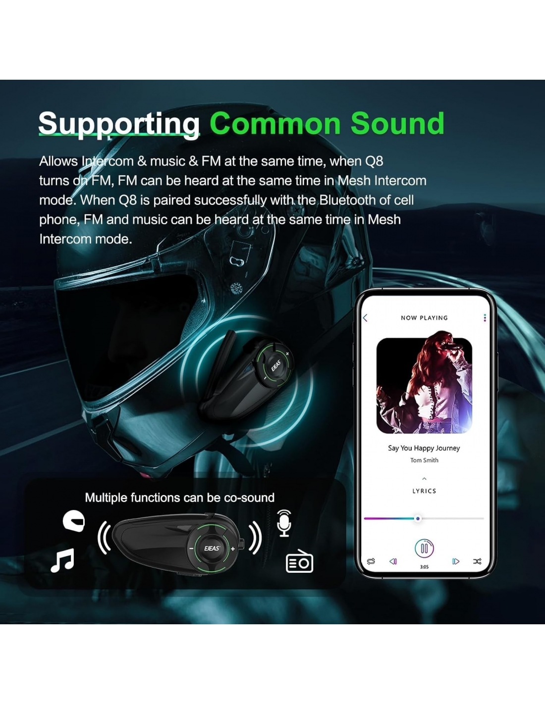 EJEAS Q8 Mesch 3.0 Interfono Moto Casco Bluetooth 5.1 Riduzione del Rumore CVC Musica per 6 Riders