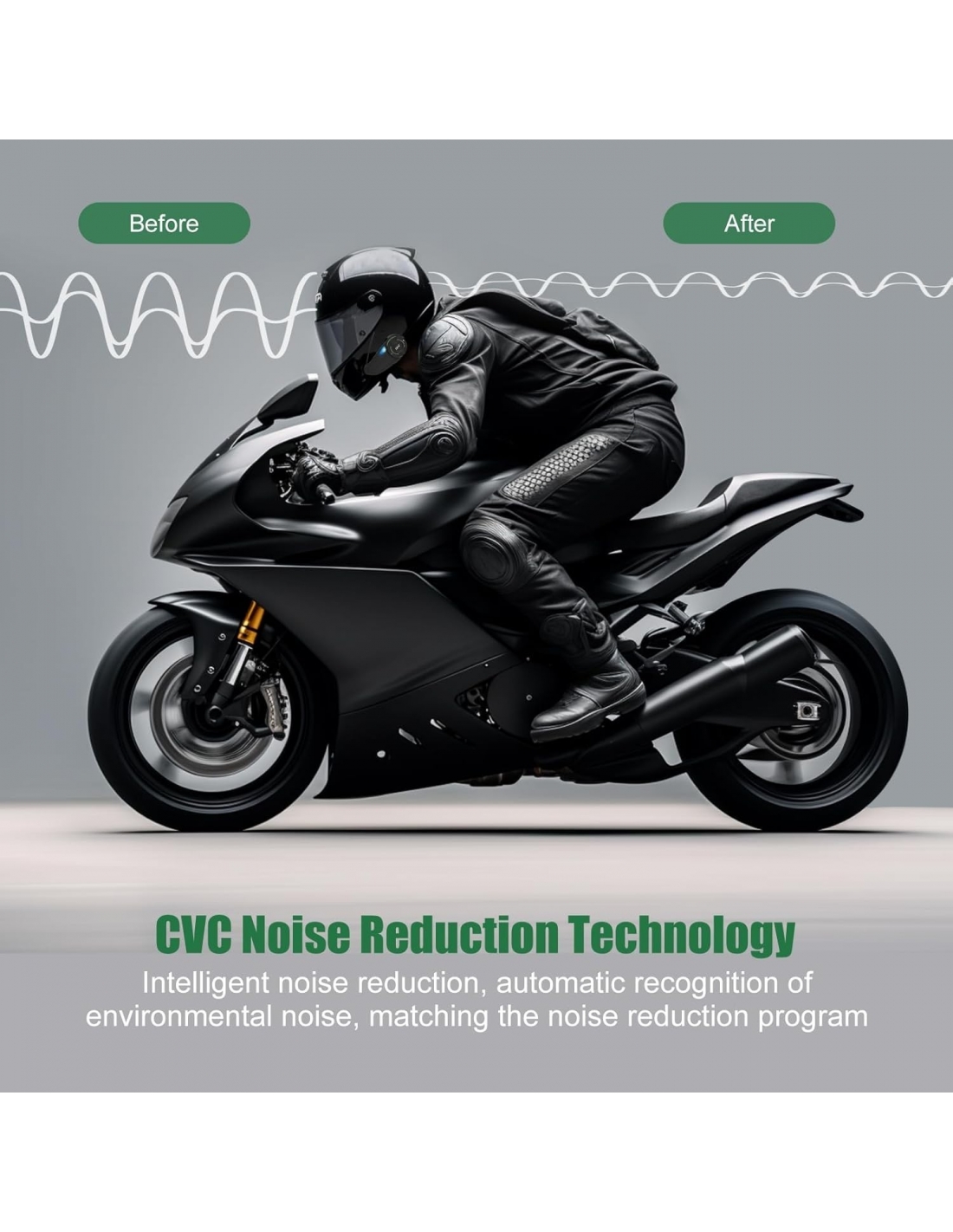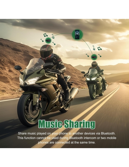 - [Cancellazione del Rumore CVC e Condivisione della Musica]: EJEAS Q8 utilizza la riduzione del rumore CVC per eliminare il rumore ambientale, rendendo il suono che senti chiaro e stabile. Nella modalità interfono Mesh, connesso al tuo telefono cellulare, puoi condividere la musica con i tuoi partner e puoi anche ascoltare musica e FM allo stesso tempo.