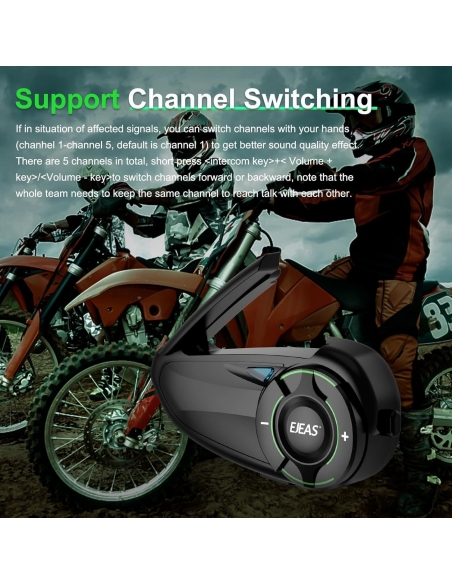 - [Commutazione Canale e Regolazione Sensibilità Microfono]: Per adattarsi a vari ambienti, EJEAS Q8 dispone di 5 canali da regolare e anche il microfono ha 5 diverse sensibilità. Puoi regolare il canale dell'interfono e la sensibilità del microfono in base ai diversi ambienti per mantenere le tue chiamate chiare e stabili.