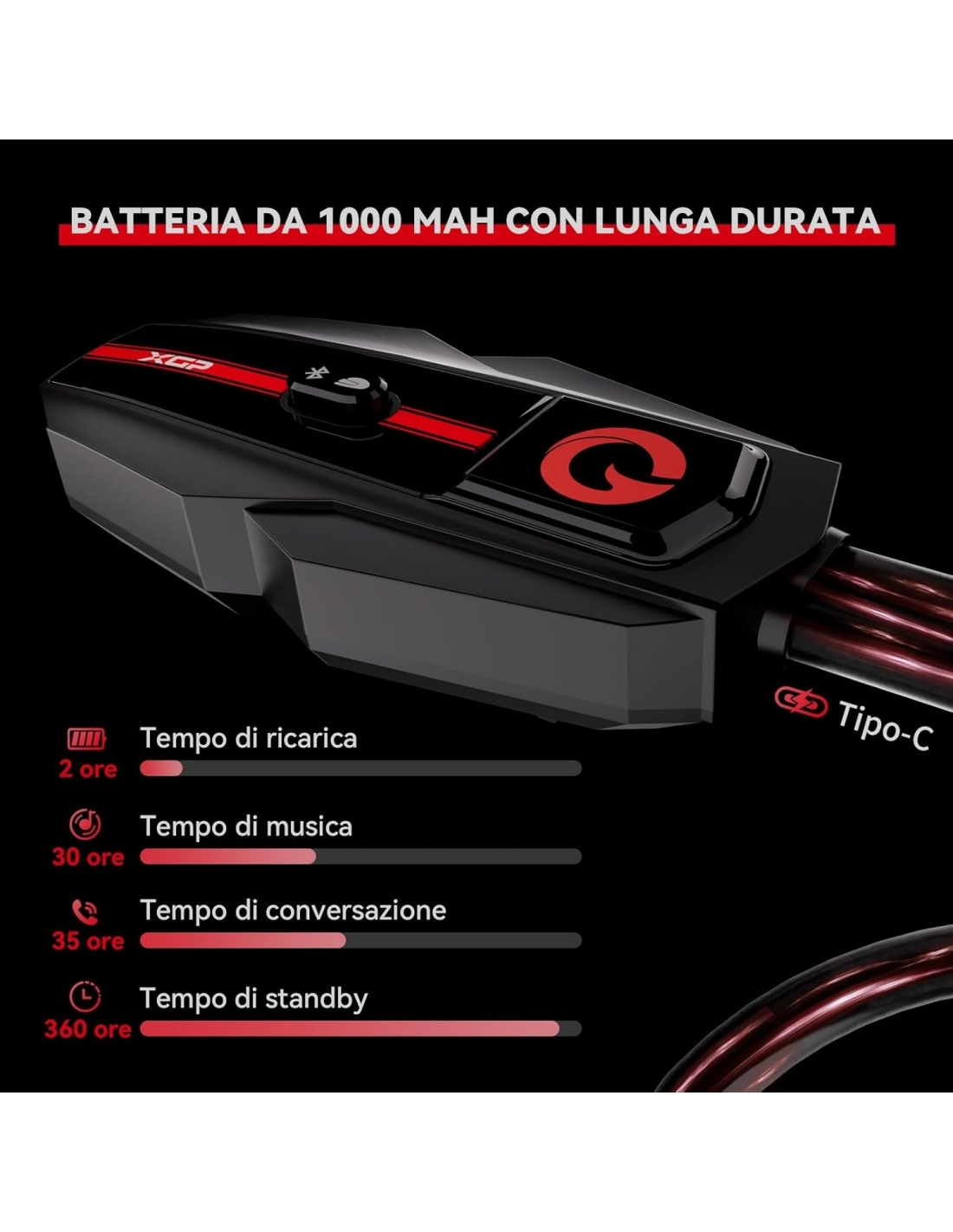 XGP 2BCEK Interfono Singolo Moto Bluetooth Auricolare Casco 1200m IP67