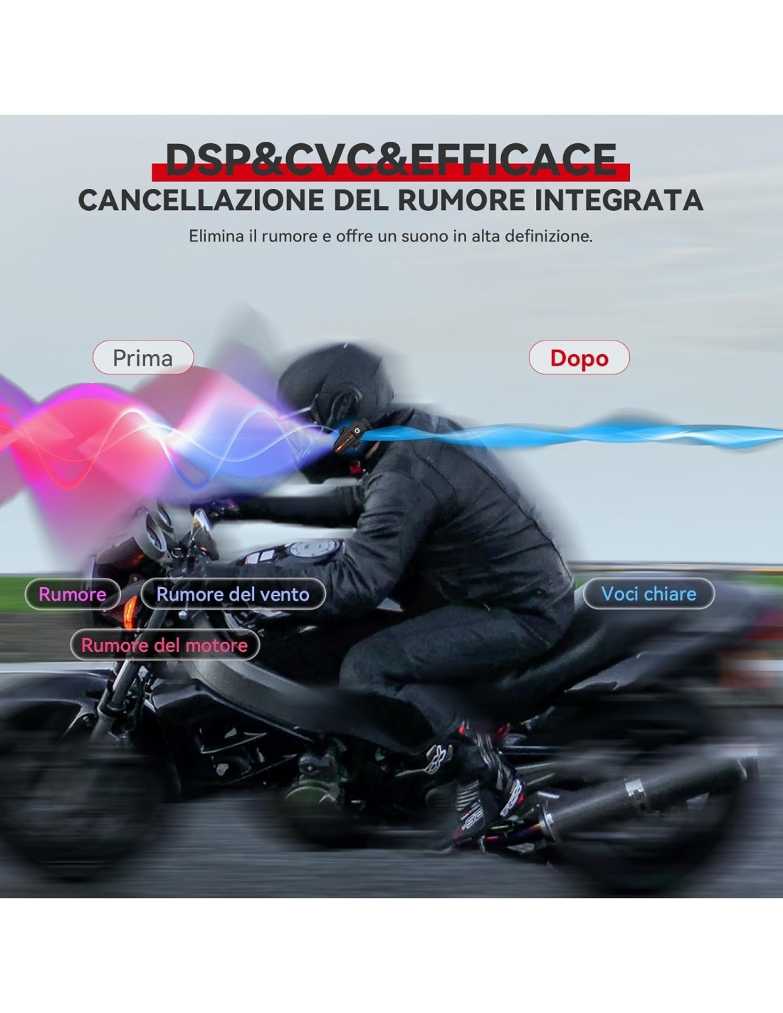 - [Cancellazione del Rumore CVC e Condivisione della Musica]: EJEAS Q8 utilizza la riduzione del rumore CVC per eliminare il rumore ambientale, rendendo il suono che senti chiaro e stabile. Nella modalità interfono Mesh, connesso al tuo telefono cellulare, puoi condividere la musica con i tuoi partner e puoi anche ascoltare musica e FM allo stesso tempo.