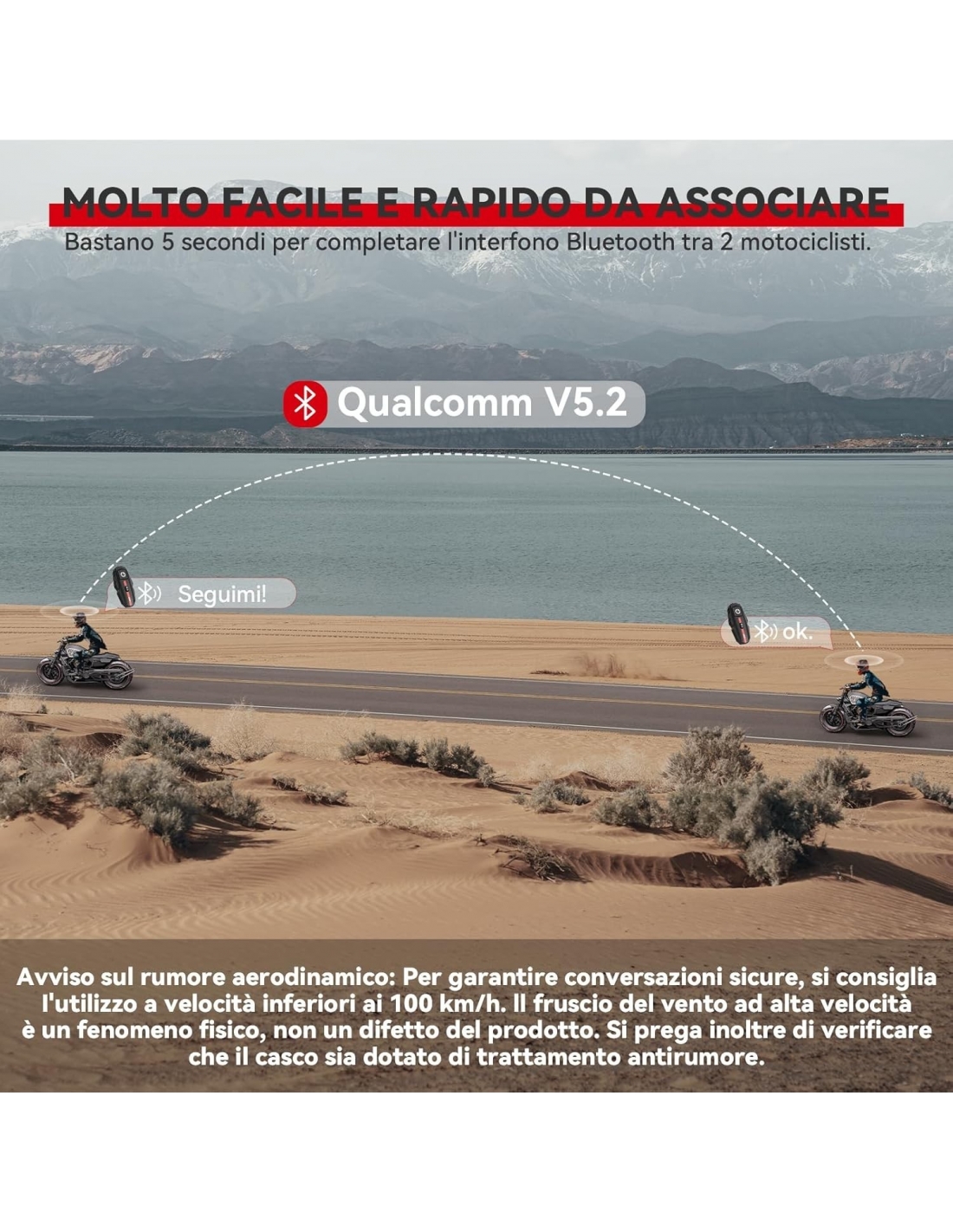 - [Tecnologia Interfonica Mesh Avanzata]: l'interfono EJEAS Q8 Mesh adotta la tecnologia avanzata Mesh 3.0 e supporta 6 persone che parlano contemporaneamente. La distanza dell'interfono è di 600~1000 m. Una volta disconnesso, può riconnettersi automaticamente entro la distanza dell'interfono per garantire la stabilità della chiamata.