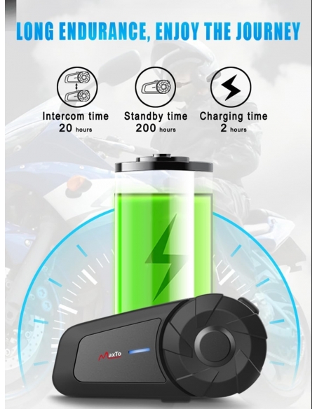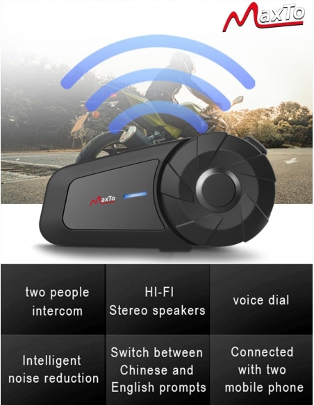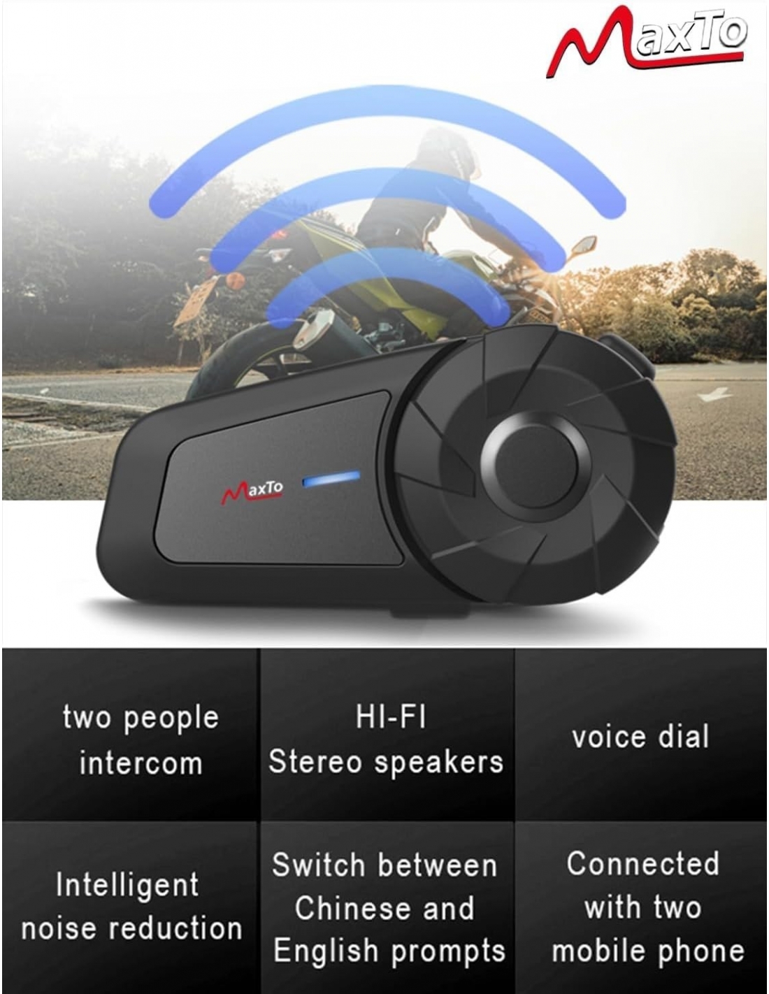 MAXTO MX1 Interfono Singolo Cuffie Bluetooth Moto HiFi IPX6 sistema 2 piloti