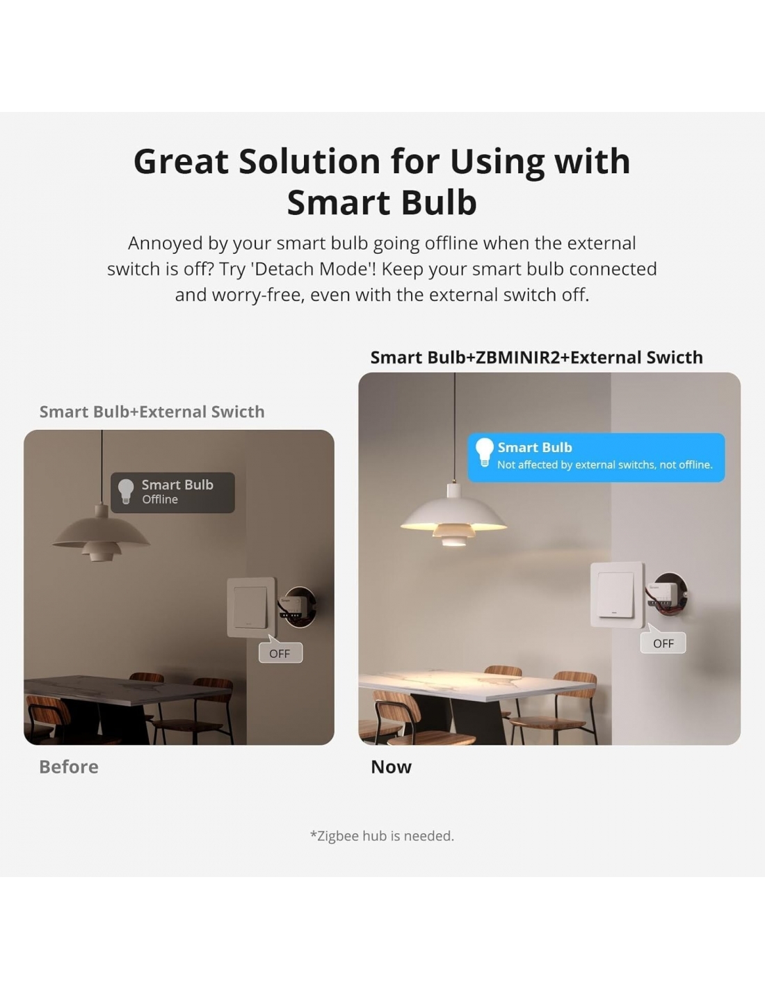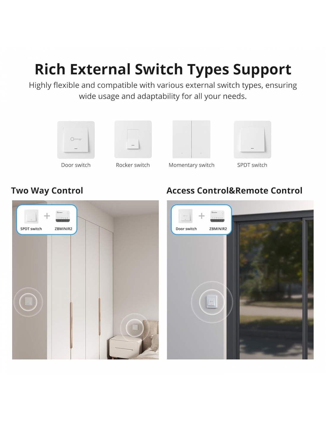 SONOFF ZBMINIR2 ZigBee Mini Smart Switch interruttore della luce controllo bidirezionale compatibile con Alexa Google Home ZigBee 3.0 Gateway Hub richiesto