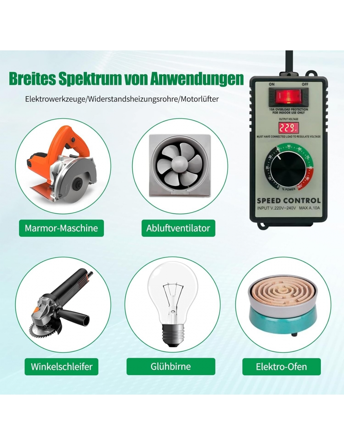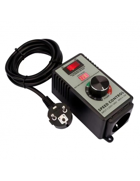 Regolatore di Velocità Motore e Tensione AC 220V - 10A, 4kW Con Interruttore di Avviamento e Spina Europea.