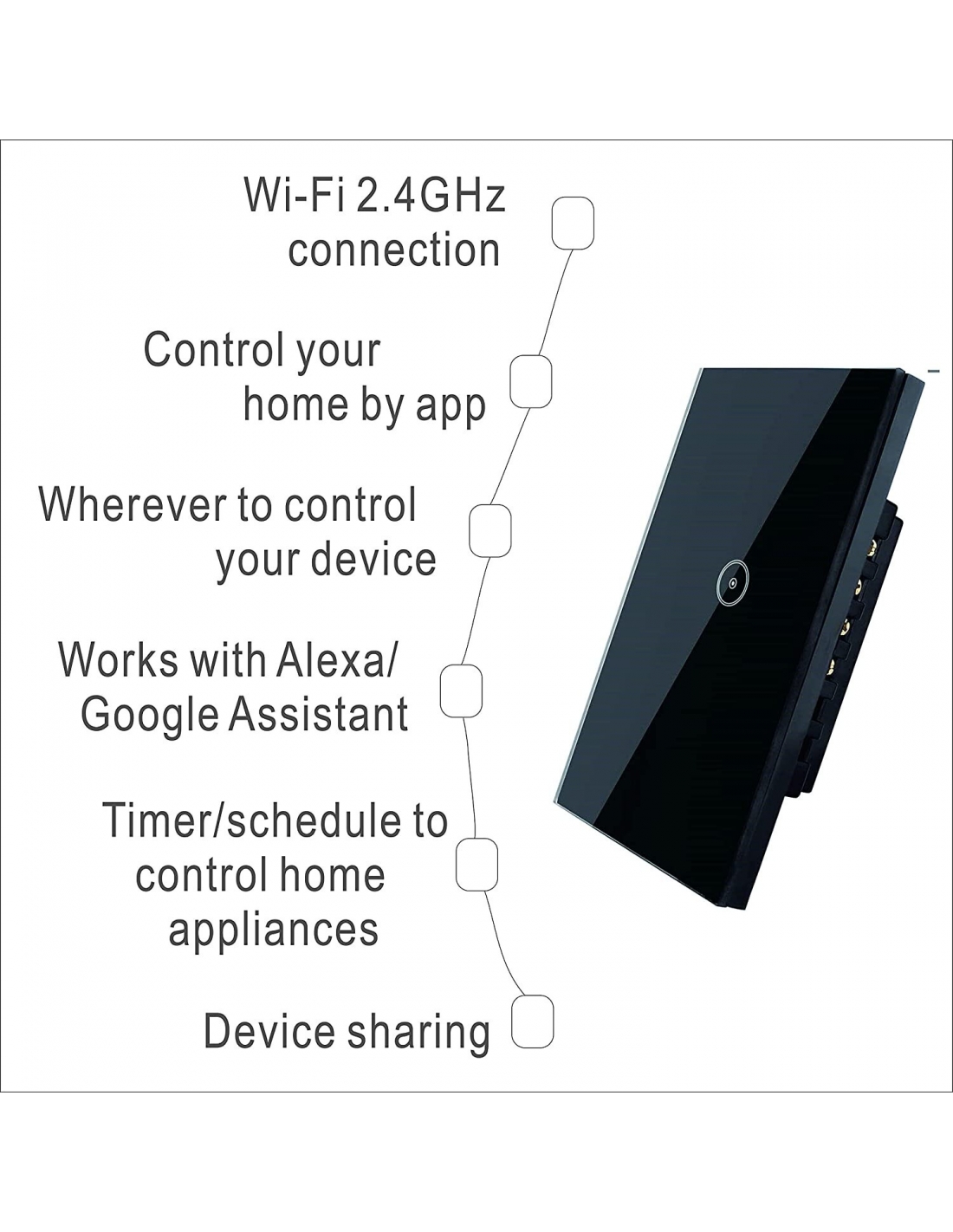 Interruttore della Luce SM-SW102 Wifi Touch Switch vetro temperato Alexa/Google Home 1 Gang Nero