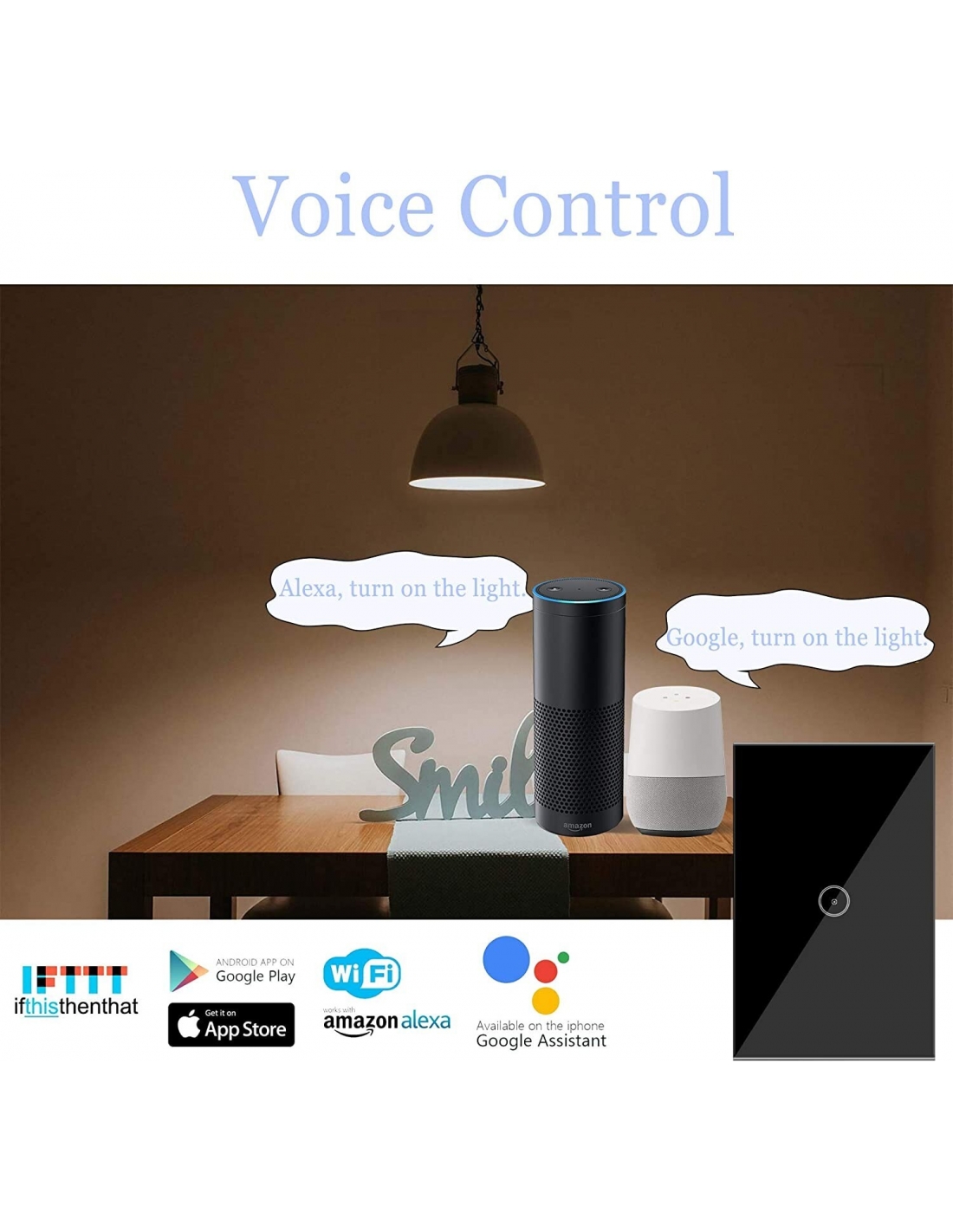 - ✤ 【Interruttore della luce compatibile con Alexa☺】 Supporta il controllo vocale, interruttore a parete intelligente compatibile con Amazon Alexa, Echo Dot e Google Assistant. Accendi/spegni le luci con i comandi vocali. Risparmia lo sforzo del pulsante, soprattutto quando hai le mani occupate. La vita diventa più facile