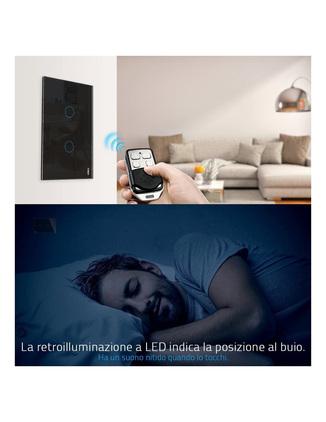 - Con l'indicatore LED, la posizione dell'interruttore può essere facilmente trovata al buio. Senso moderno di scienza e tecnologia. Velocità di risposta al tocco di 1.000ms, tecnologia avanzata sensibile al tocco.
