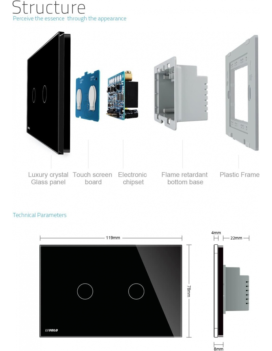 - Design di alta gamma e buona sensibilità tattile: touch panel in cristallo temperato, liscio al tatto e facile da pulire.