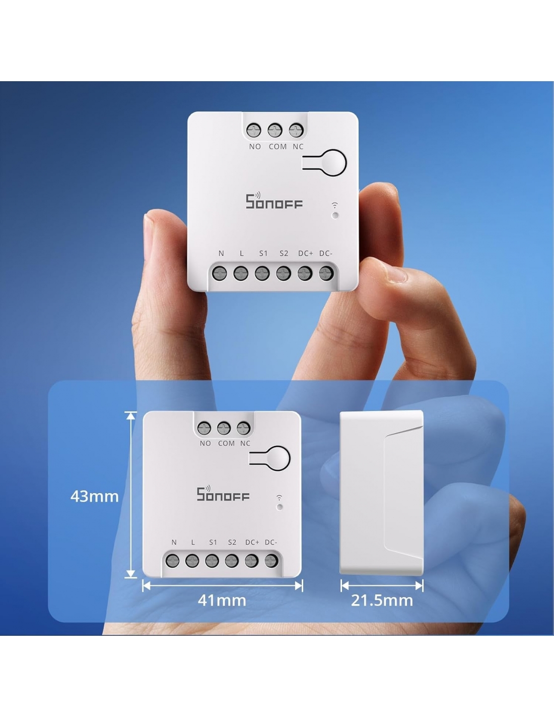 - Contatto a secco: L'interruttore SONOFF MINI-D supporta l'uscita a contatto secco con le opzioni Normalmente aperto (NO) e Normalmente chiuso (NC); può controllare dispositivi come riscaldatori, porte da garage e sistemi di controllo degli accessi alimentati da segnali di contatto a secco