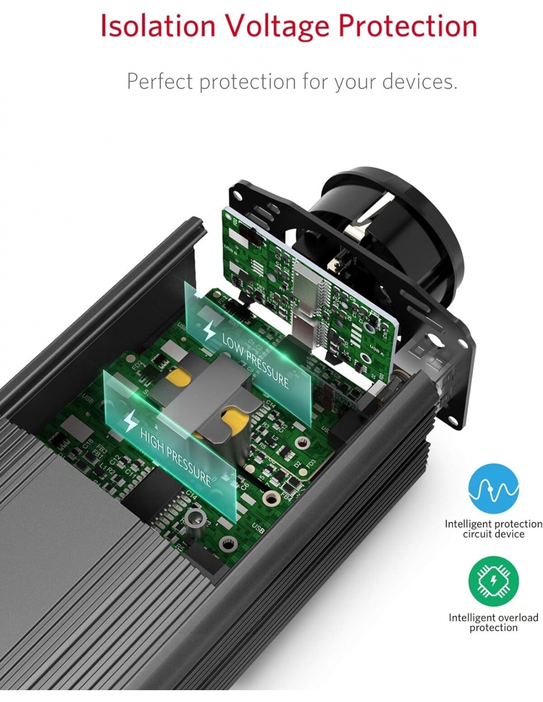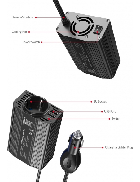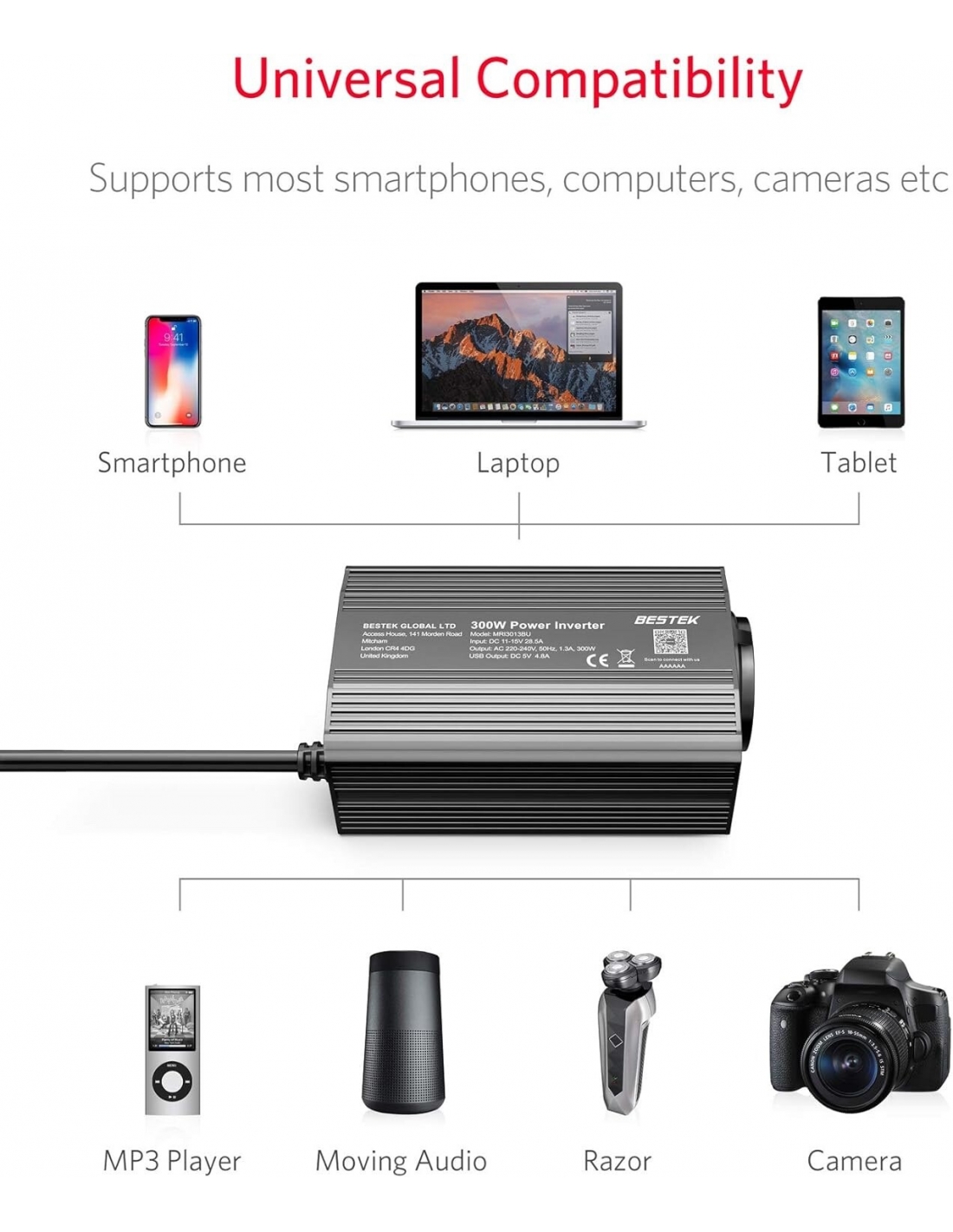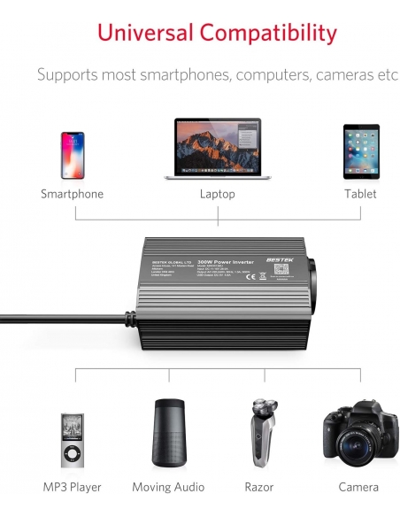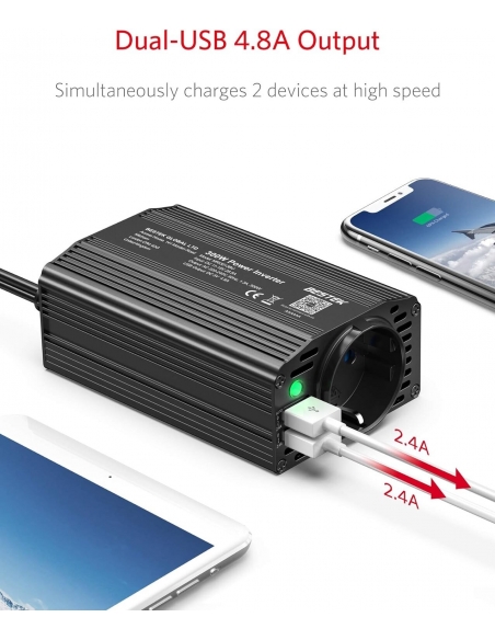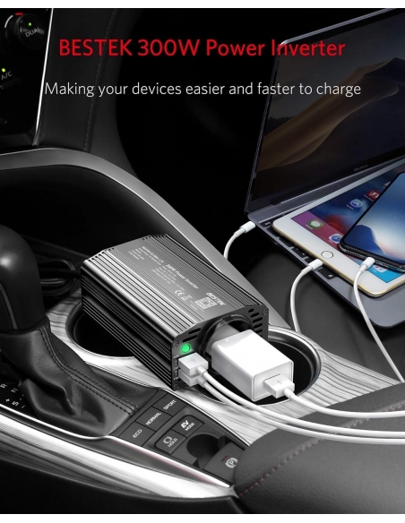 - BESTEK 300W Inverter da Auto 12V 220V con 2 Porte USB 4.8 A