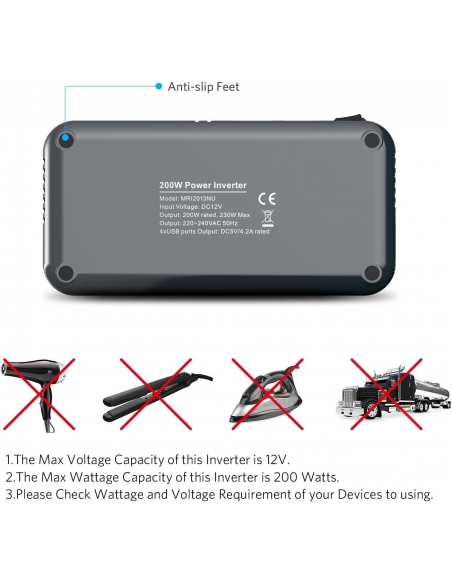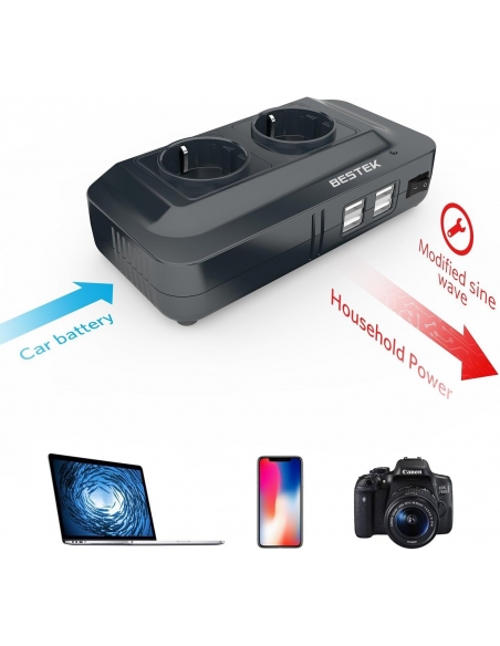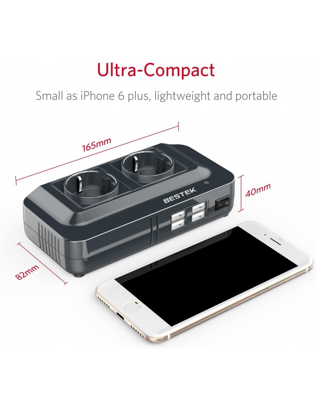 - BESTEK MRI2013NU 200W Inverter Auto 12V 220V Con 4 Porte Smart US