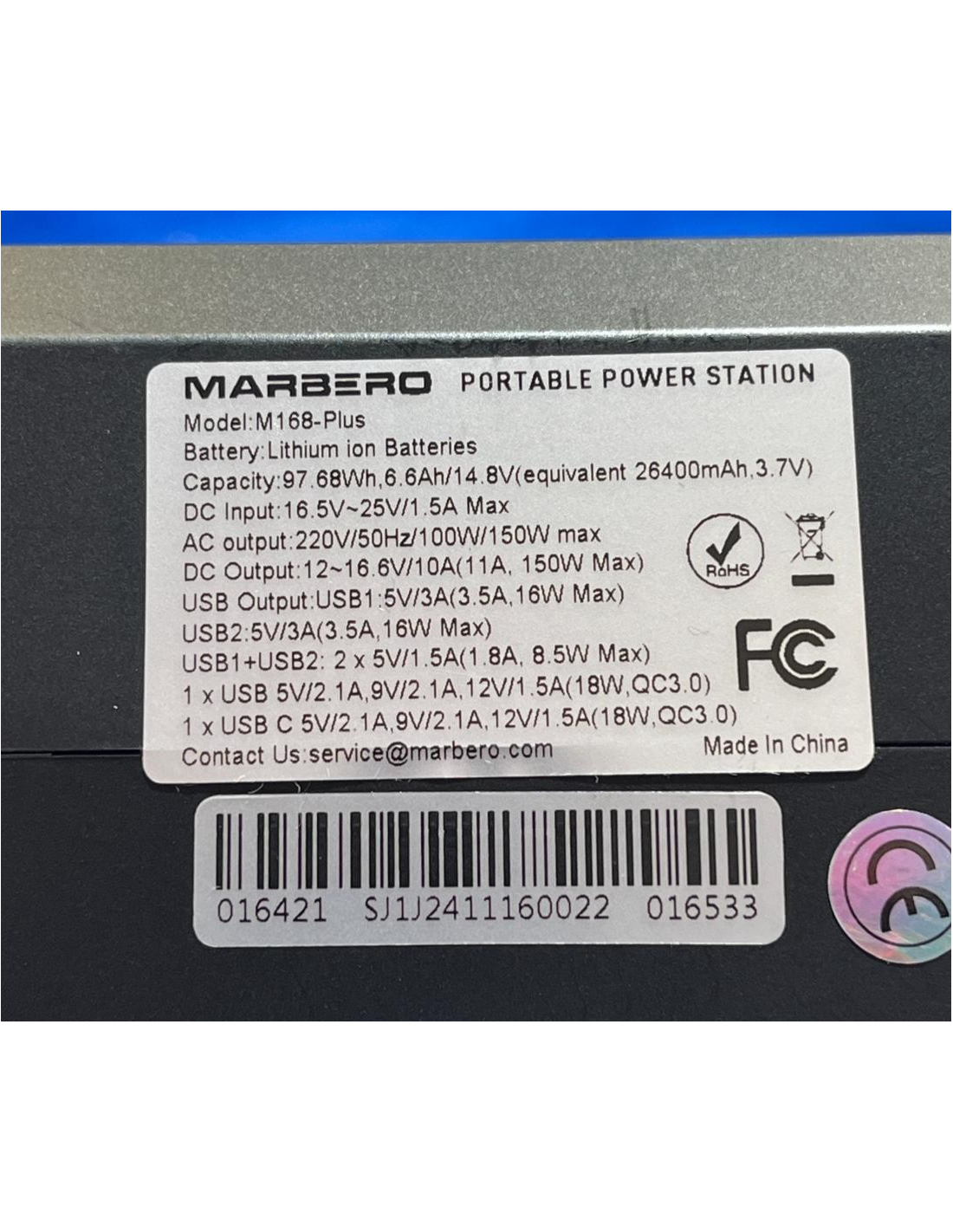 MARBERO M168-PLUS 26400mAh Inverter Portatile Presa 220V 98Wh USB e Torcia
