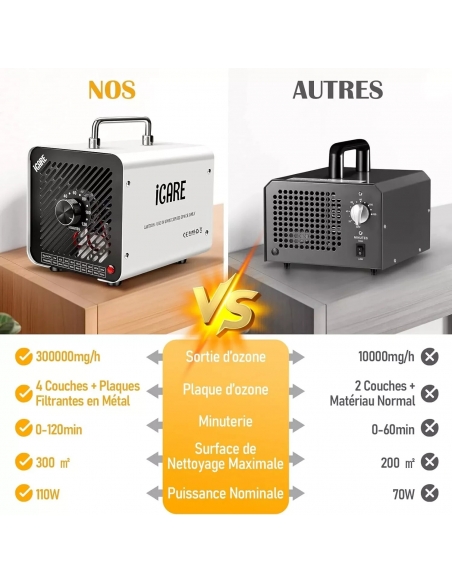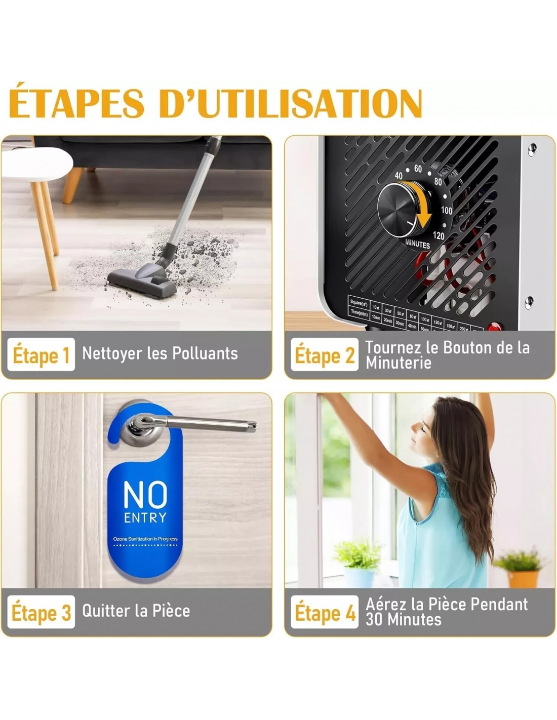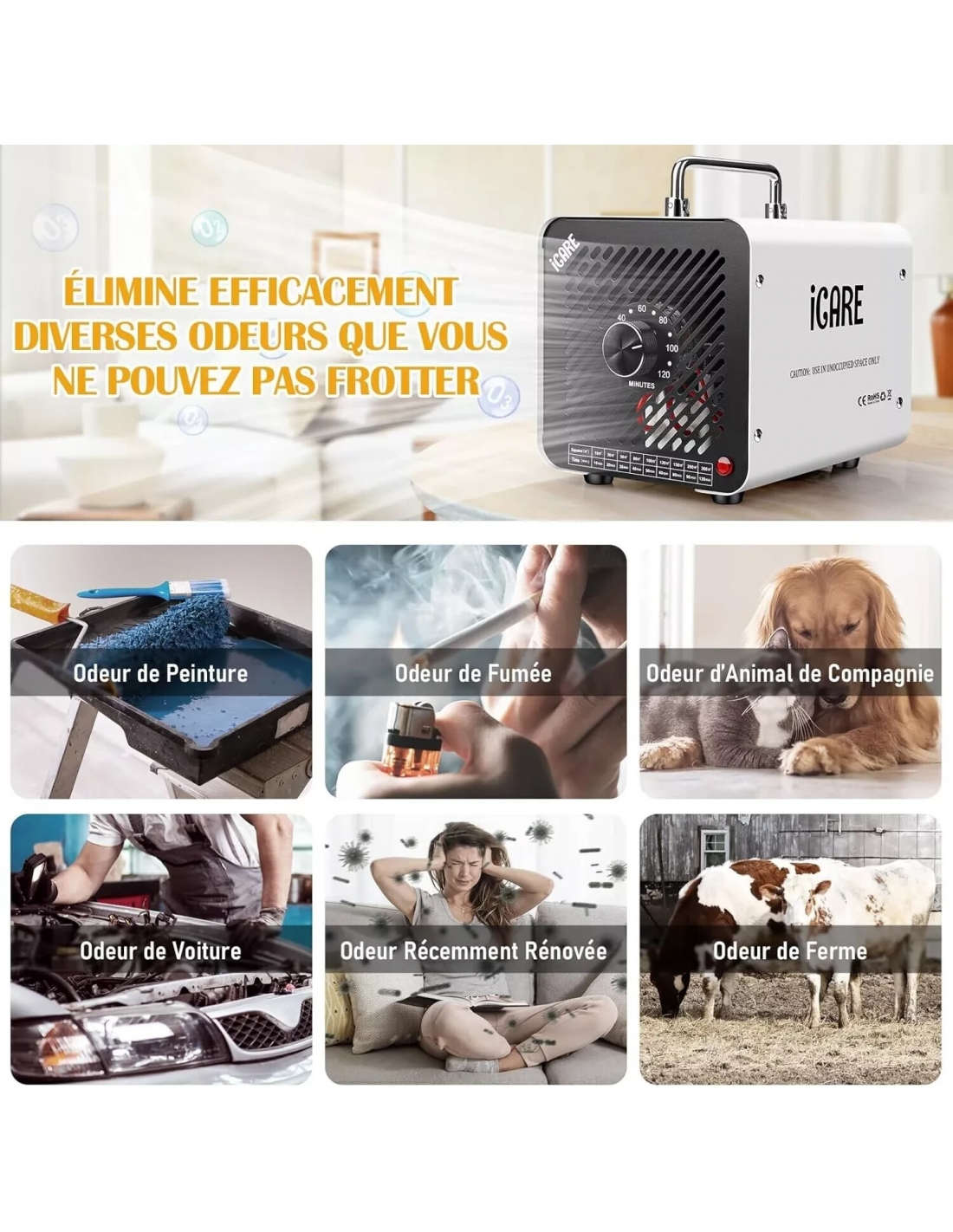- Generatore di Ozono Efficiente da 30000 mg/h: il purificatore d'aria a ozono aggiornato può produrre 30000 mg di ozono ogni ora, la gamma di purificazione è fino a 300 ㎡. Genera immediatamente ozono massiccio, rimuove rapidamente gli odori. Può deodorare e igienizzare efficacemente il tuo spazio per proteggerlo da odori, muffe, batteri e VOC come la formaldeide. Case, camere da letto, uffici, hotel, ristoranti, auto, ecc. perfetti per creare un ambiente di vita pulito e confortevole per te