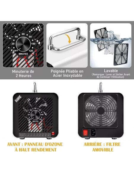 - Purificatore d'Aria all'Ozono con Timer da 120 Minuti: Con il timer che consente un funzionamento regolabile fino a 2 ore. È possibile impostare la durata del timer in base alle dimensioni della stanza e all'intensità dell'odore da neutralizzare. La manopola del timer è stata aggiornata per poter ruotare direttamente la manopola se si desidera modificare l'ora, anche se si imposta un'ora senza azzerarsi