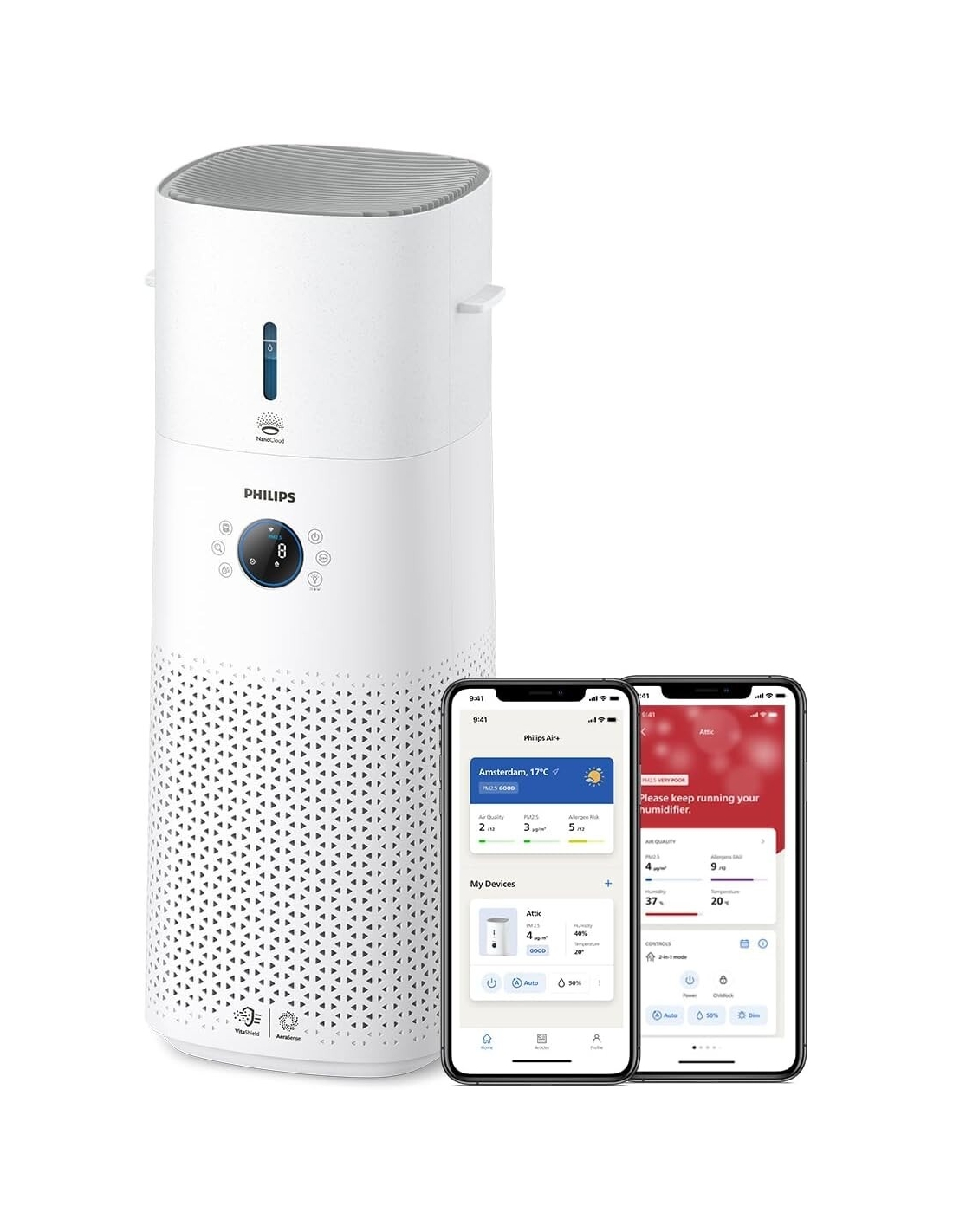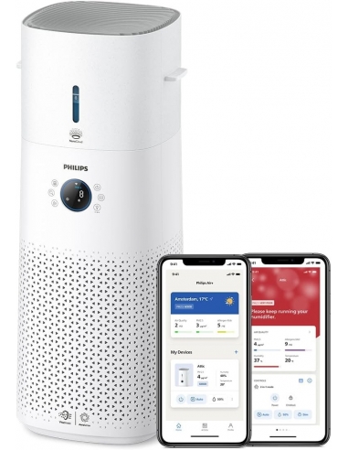 - Rilevazione intelligente e connessione completa per il vostro comfort. I sensori intelligenti AeraSense scansionano l'aria e forniscono un feedback in tempo reale sulla qualità dell'aria della stanza, che è possibile monitorare e controllare con l'app Air+