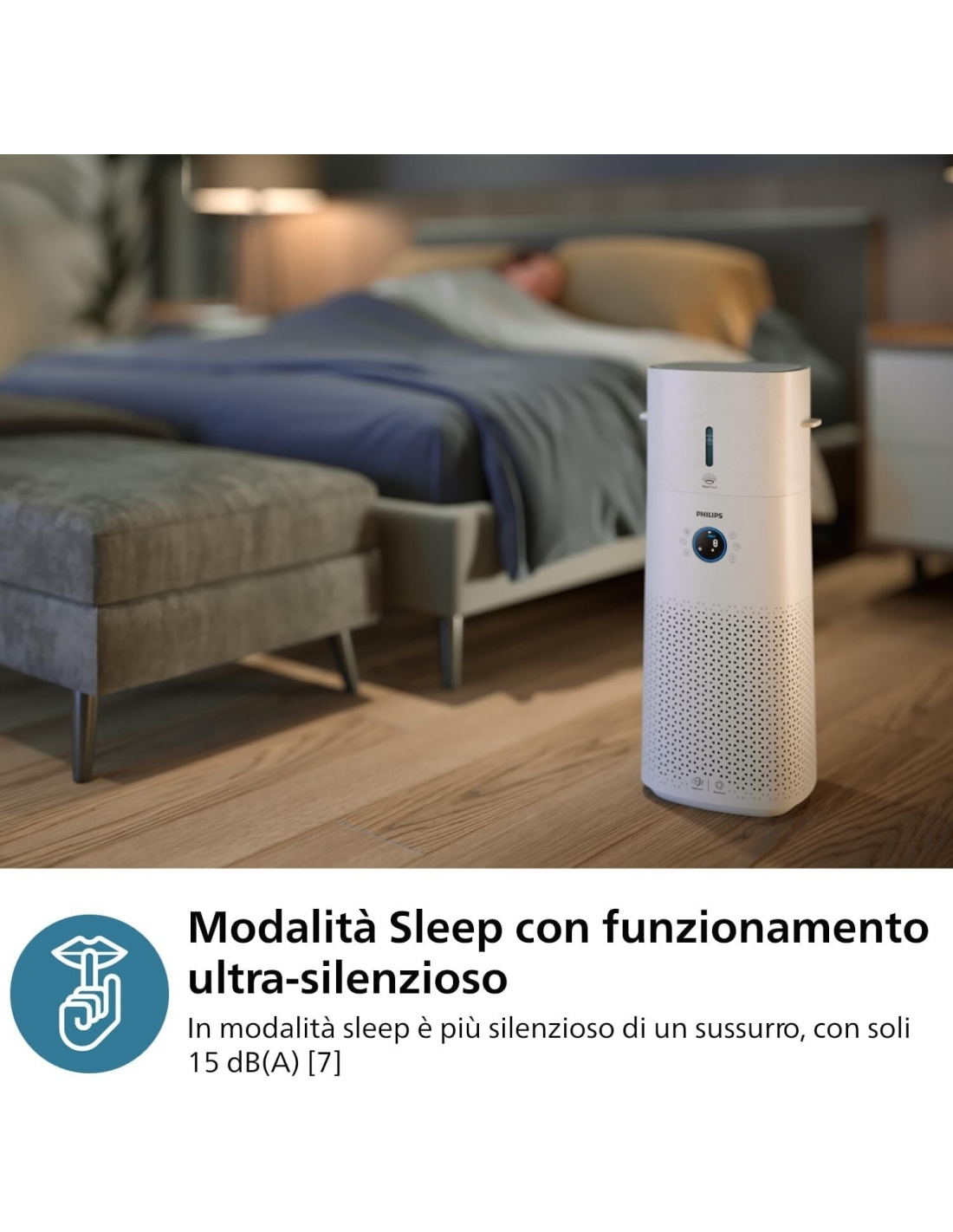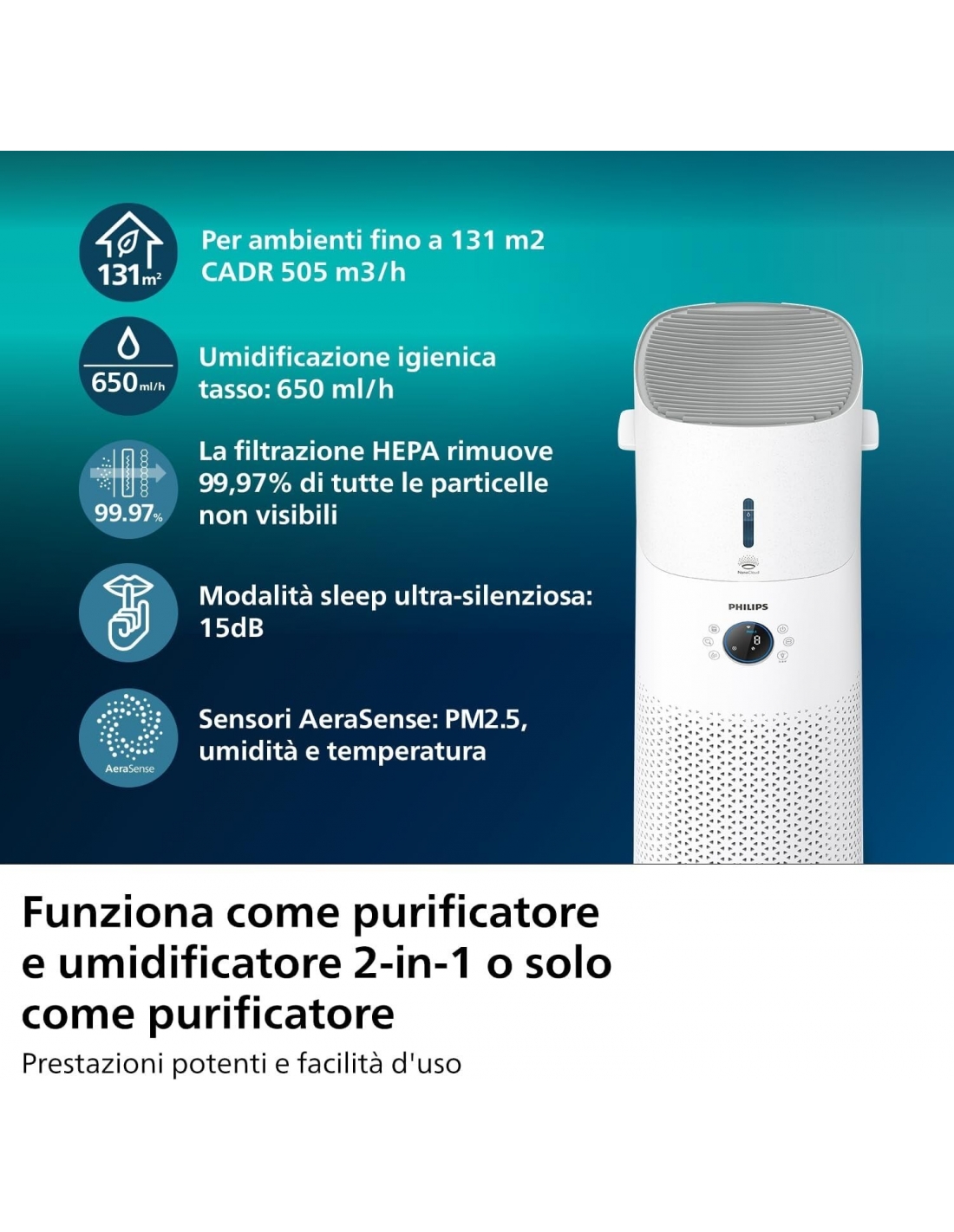 Philips Purificatore d'aria e umidificatore 2-in-1 Serie 3000, 131 m2, filtro NanoProtect HEPA & Carboni attivi, rimuove il 99,97% di tutte le particelle invisibili, Bianco (AC3737/10)