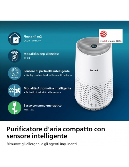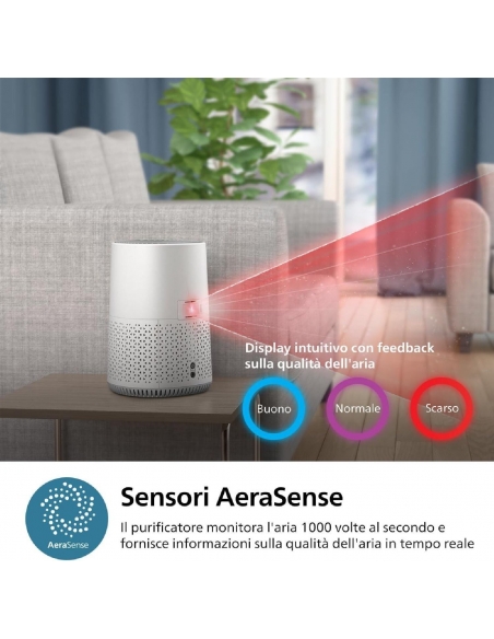 - Purifica ambienti fino a 44 m2: Con un CADR di 170 m3/h, purifica l'aria in meno di 17 minuti (3), rimuovendo particelle come PM2,5, polline, forfora di animali domestici e altri inquinanti