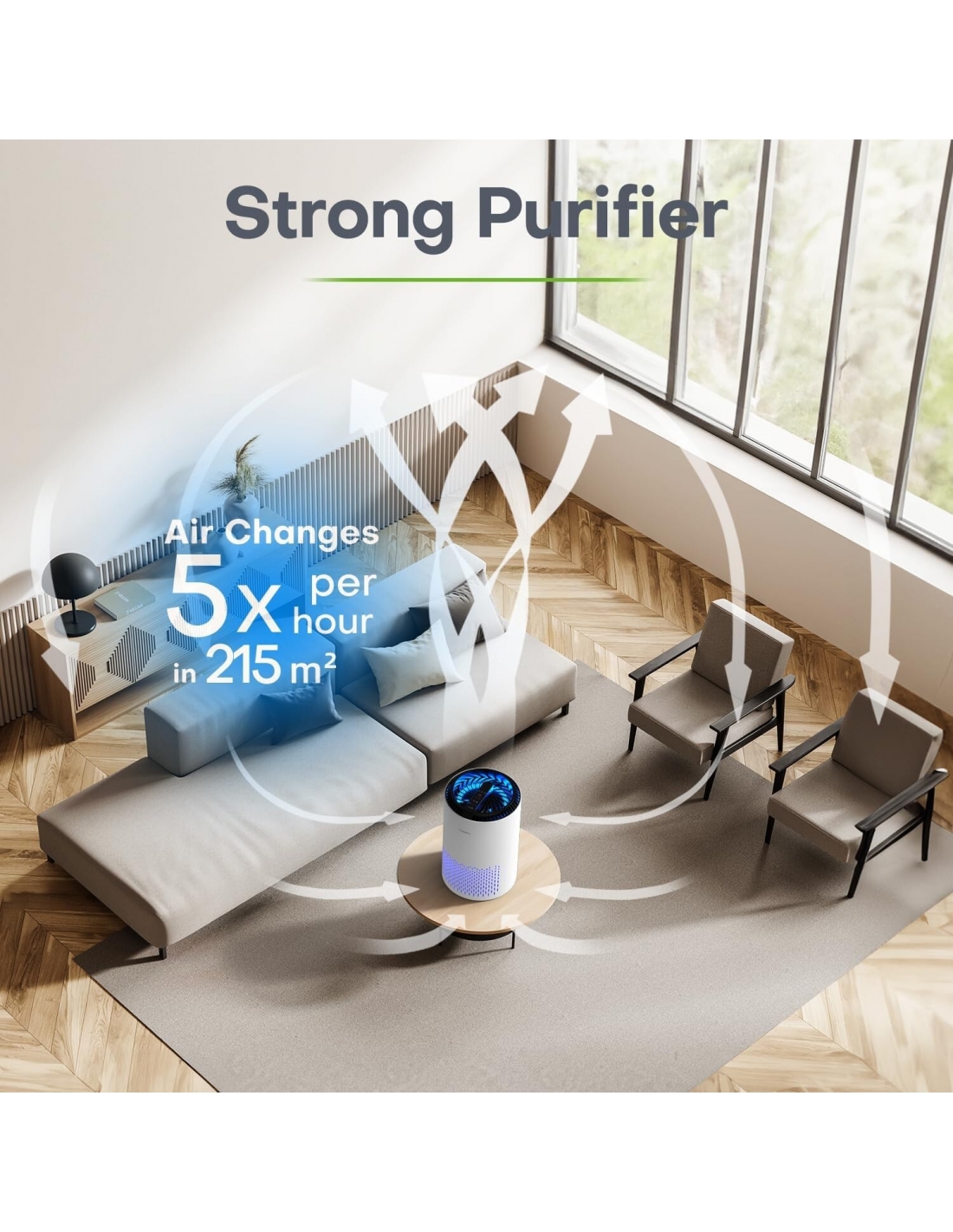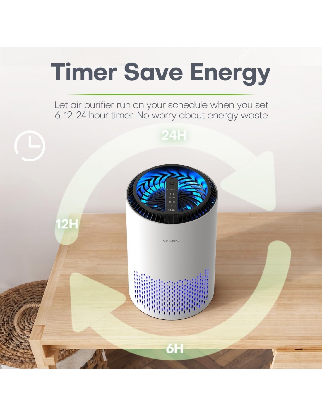 - Questo purificatore aria ha una potenza nominale di 22 watt, che è efficiente dal punto di vista energetico. Inoltre, questa purificatore aria è dotata di una funzione timer che consente di impostare un orario e di spegnere automaticamente l'apparecchio, senza doversi preoccupare del consumo di energia o delle bollette dell'elettricità.