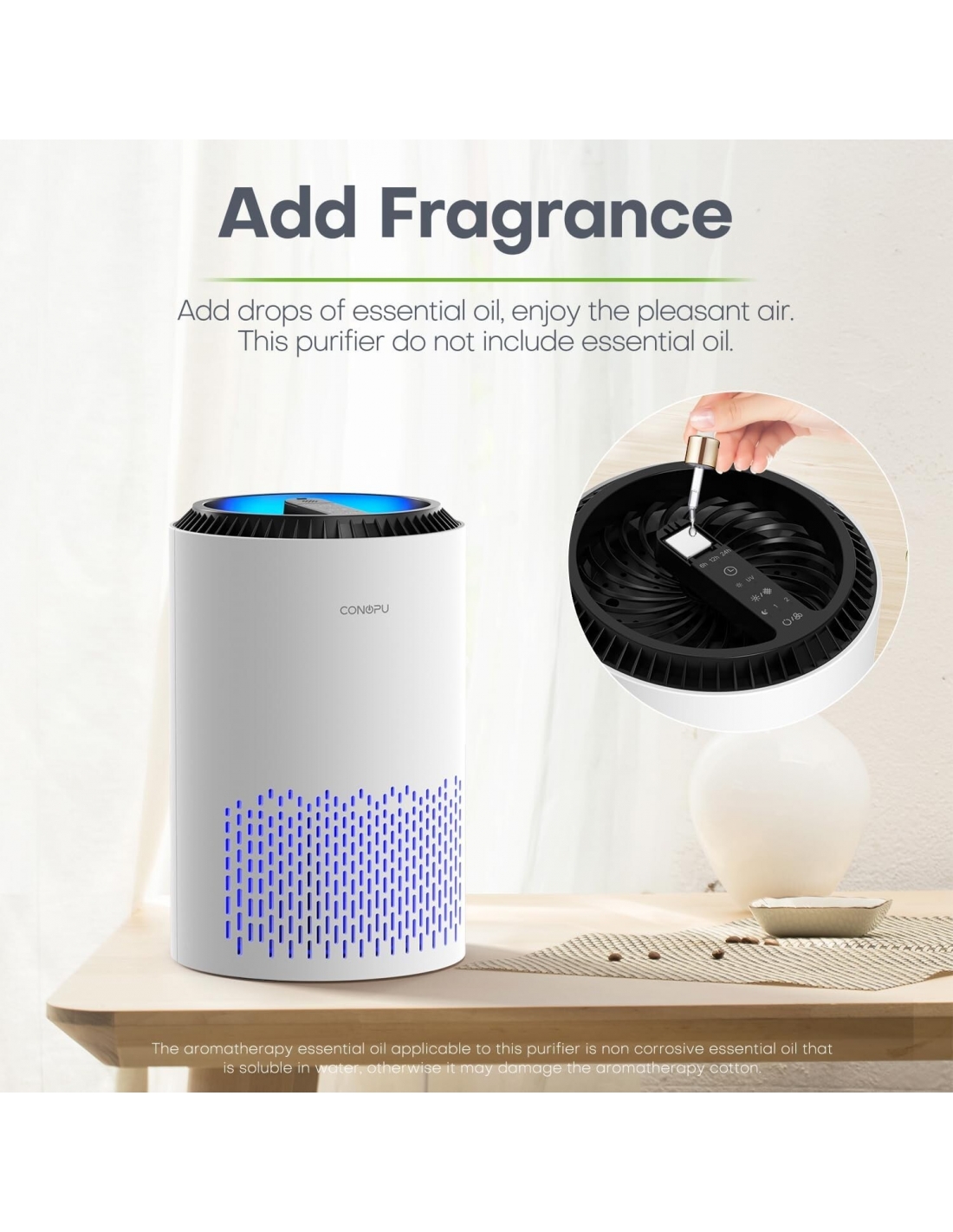 - Per aiutarvi a rilassarvi dopo il lavoro, per rendere più piacevole l'atmosfera familiare o l'ambiente dell'ufficio, per l'ambiente sportivo di casa, abbiamo appositamente progettato una fessura per oli essenziali per l'aromaterapia; potete aggiungere il vostro profumo preferito per questo air purifier e il profumo riempirà la vostra casa mentre l'aria viene purificata.