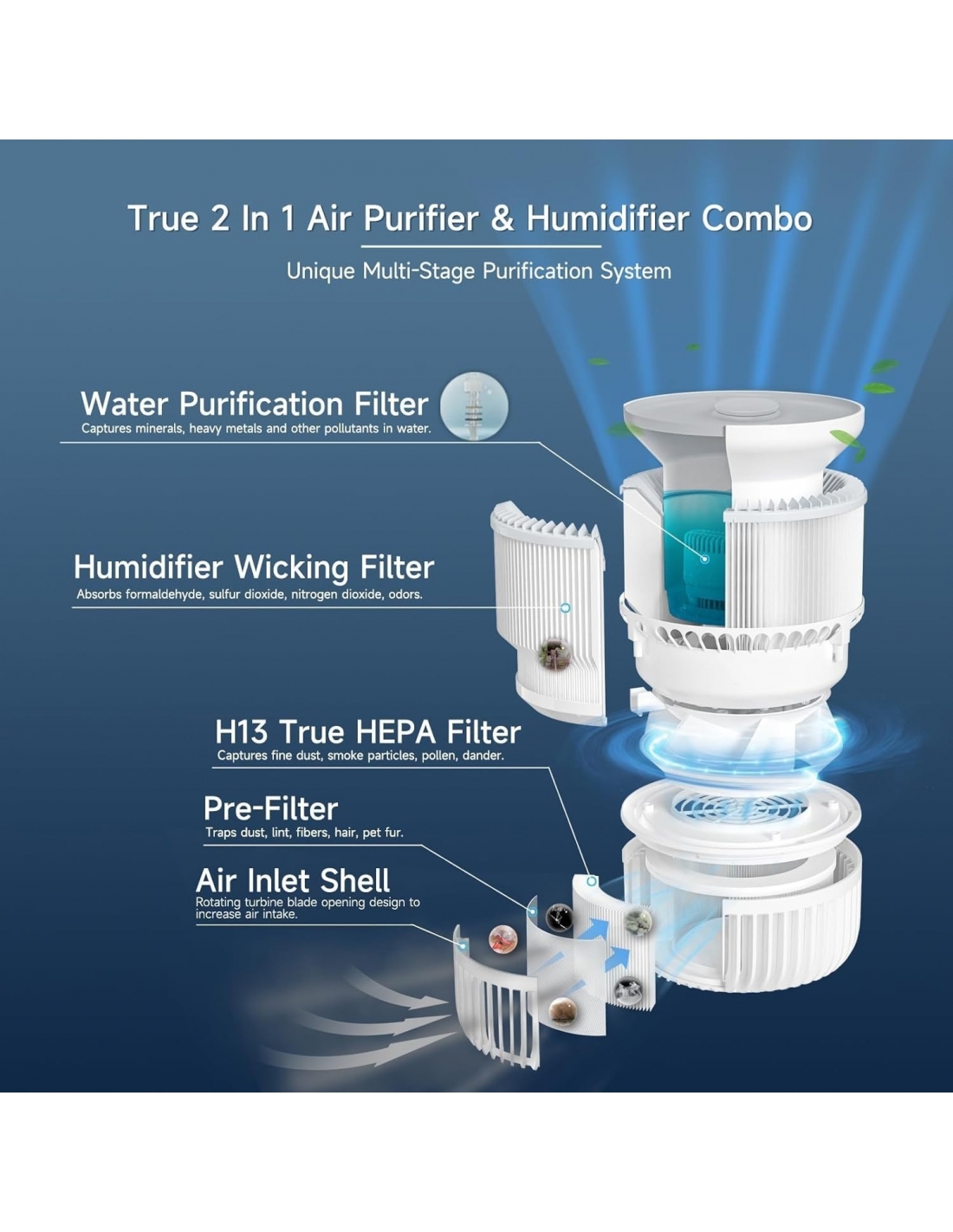 AIRAPEX 2 in 1 Purificatore d'aria e umidificatore evaporativo combinato per la camera da letto, H13 vero filtro HEPA, umidificatore d'aria fresca senza nebbia evaporativa WIFI Connect