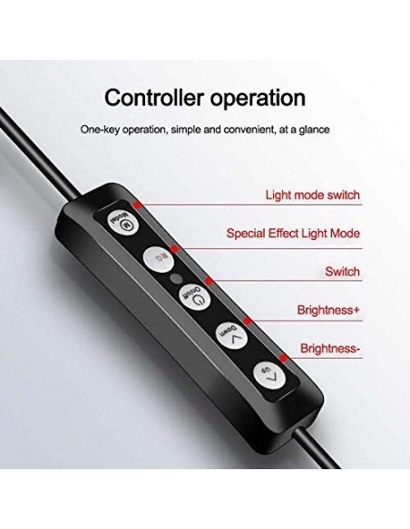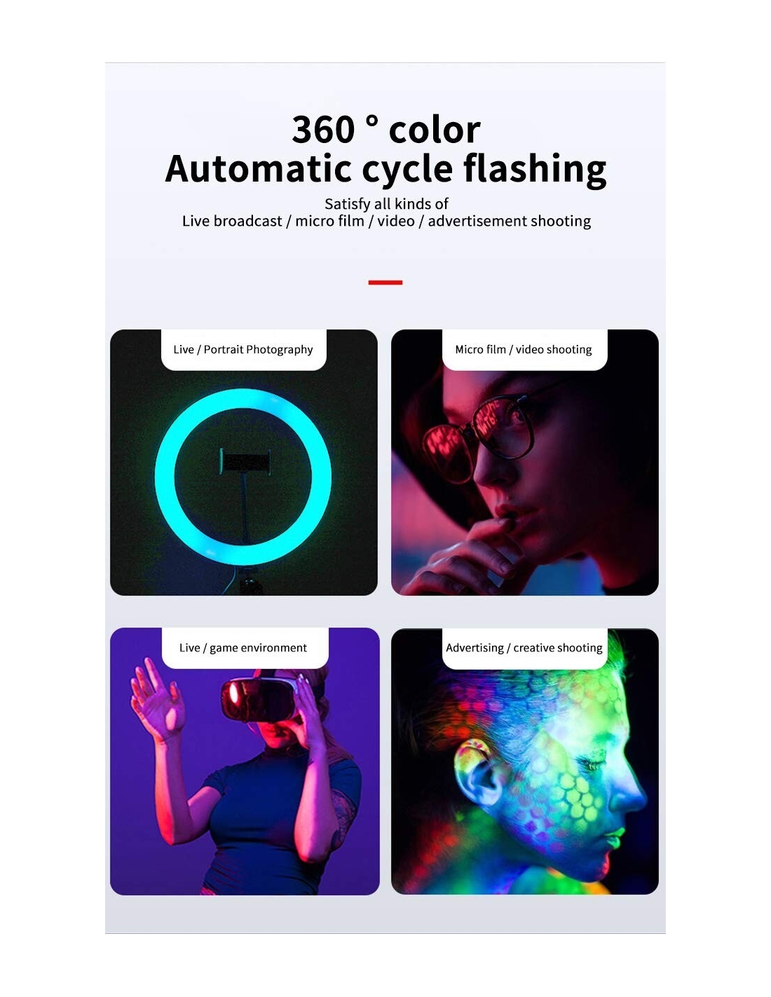 La confezione include: -1 luce anulare RGB, 1 mini supporto per luci, 1 supporto per cellulare, 1 testa a sfera
