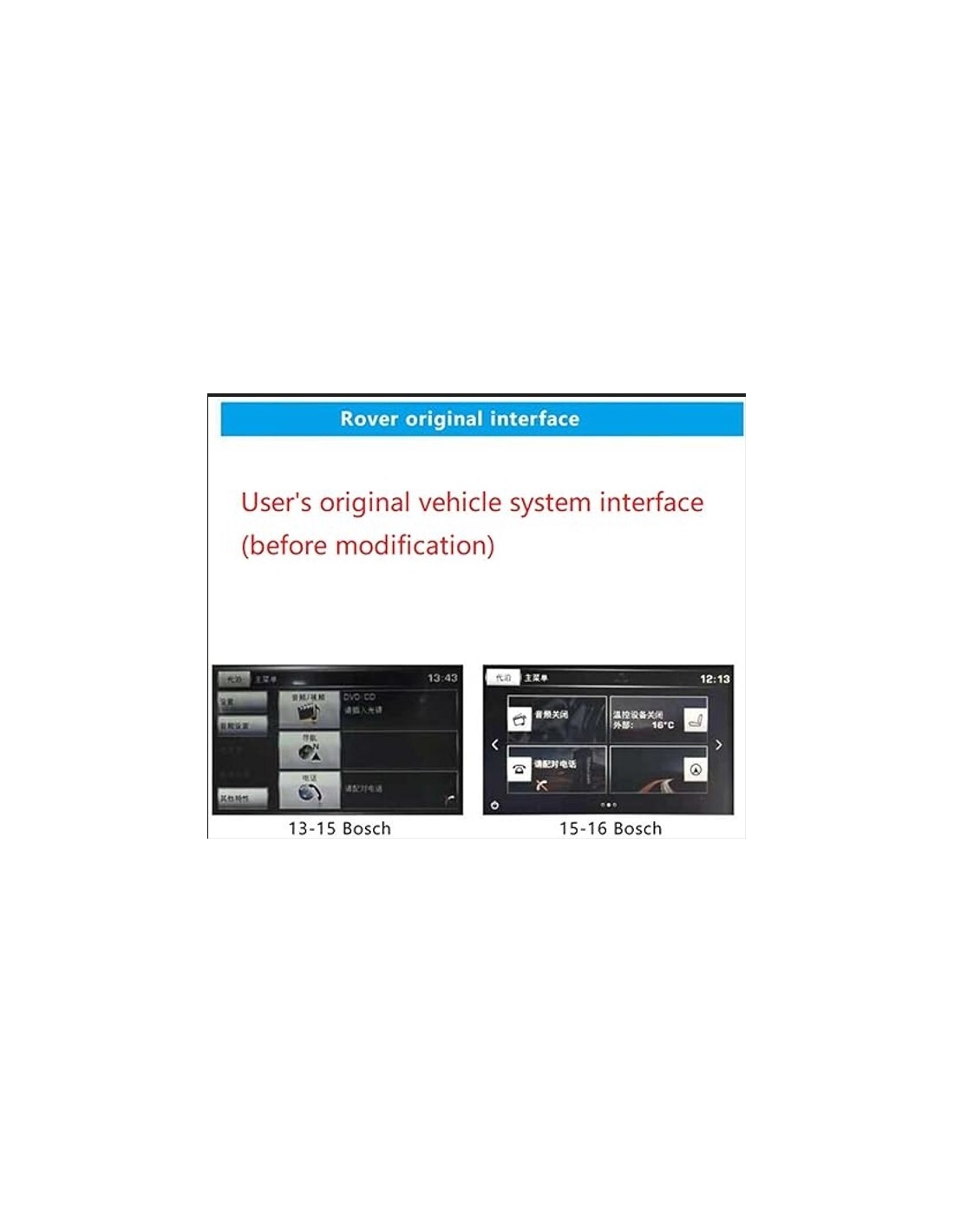 1. Montaggio: il lettore multimediale per auto sostituisce Land Rover Range Rover Sport L494 Bosch 2013‑2016, sostitutivo per Land Range Rover Vogue L405 Bosch 2013‑2016.