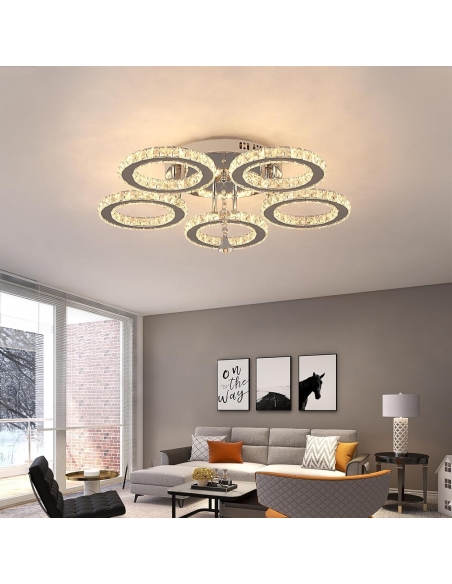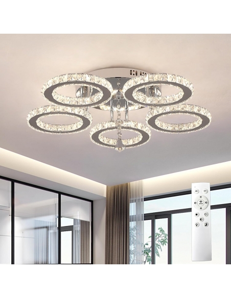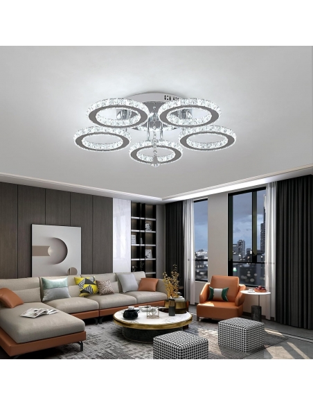 VETRULUS Plafoniera moderna a LED in cristallo - Lampadario di cristallo dimmerabile a semi-incasso per soggiorno - Plafoniera a 5 anelli per lampadario a LED per camera da letto e cucina [Classe di efficienza energetica E]