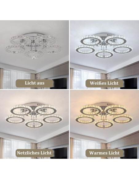 - Design esclusivo e premium - Le plafoniere del lampadario di cristallo sono sapientemente realizzate con una combinazione di acciaio inossidabile di alta qualità e cristallo K9, garantendo sia durata che maestria eccezionale. Il cristallo K9 è tagliato in modo intricato con molteplici sfaccettature, creando forme simili a diamanti che migliorano la rifrazione della luce e creano un gioco mozzafiato di luci e ombre.
