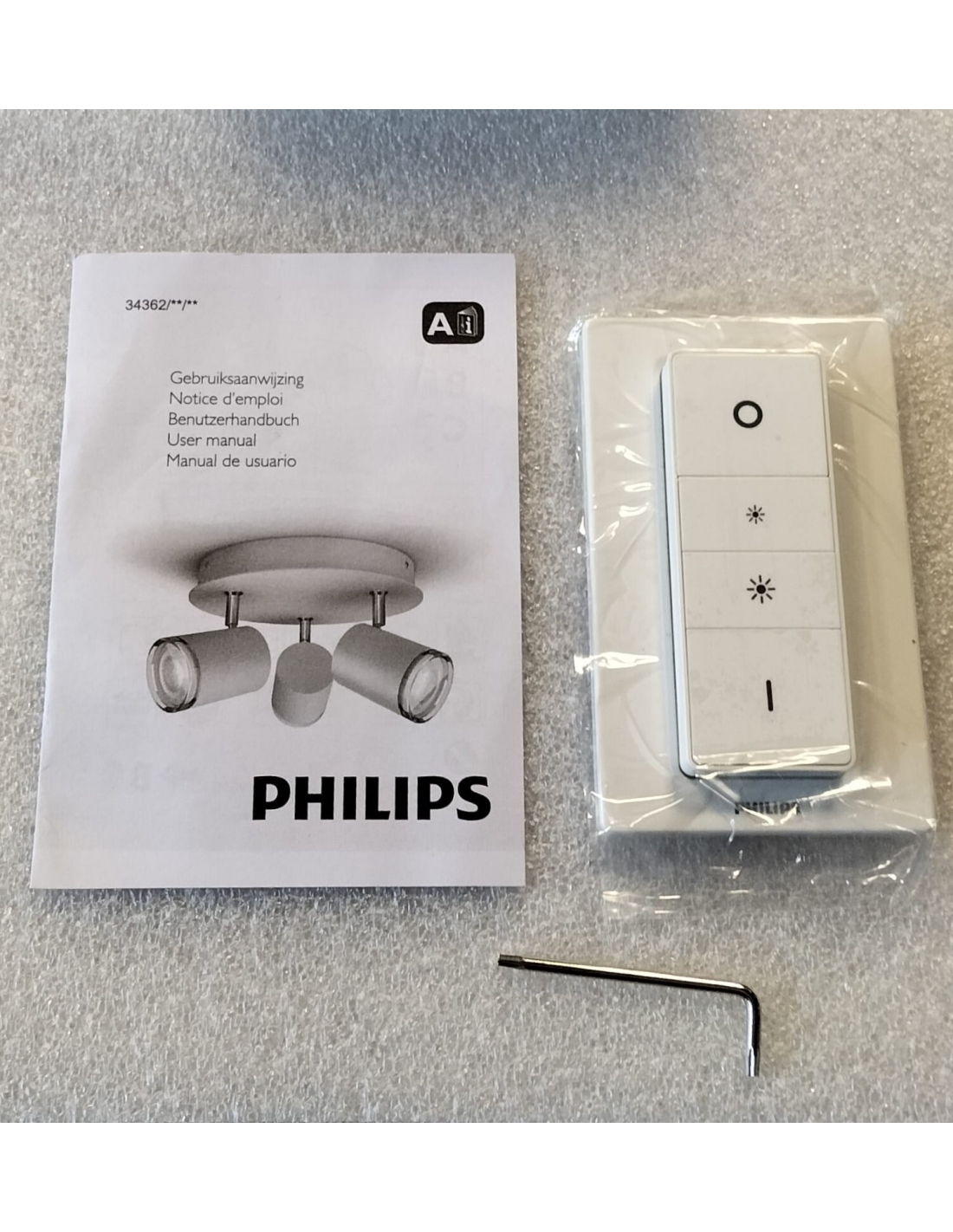 - Il dimmer Philips Hue è pronto all'uso, ad esempio per abbassare o aumentare la luminosità delle luci, senza bisogno di un cavo per il dimmer. Scegli una delle ricette leggere esistenti Rilassante, Lettura, Concentrazione o Energia e ottieni il massimo dalla tua routine quotidiana.