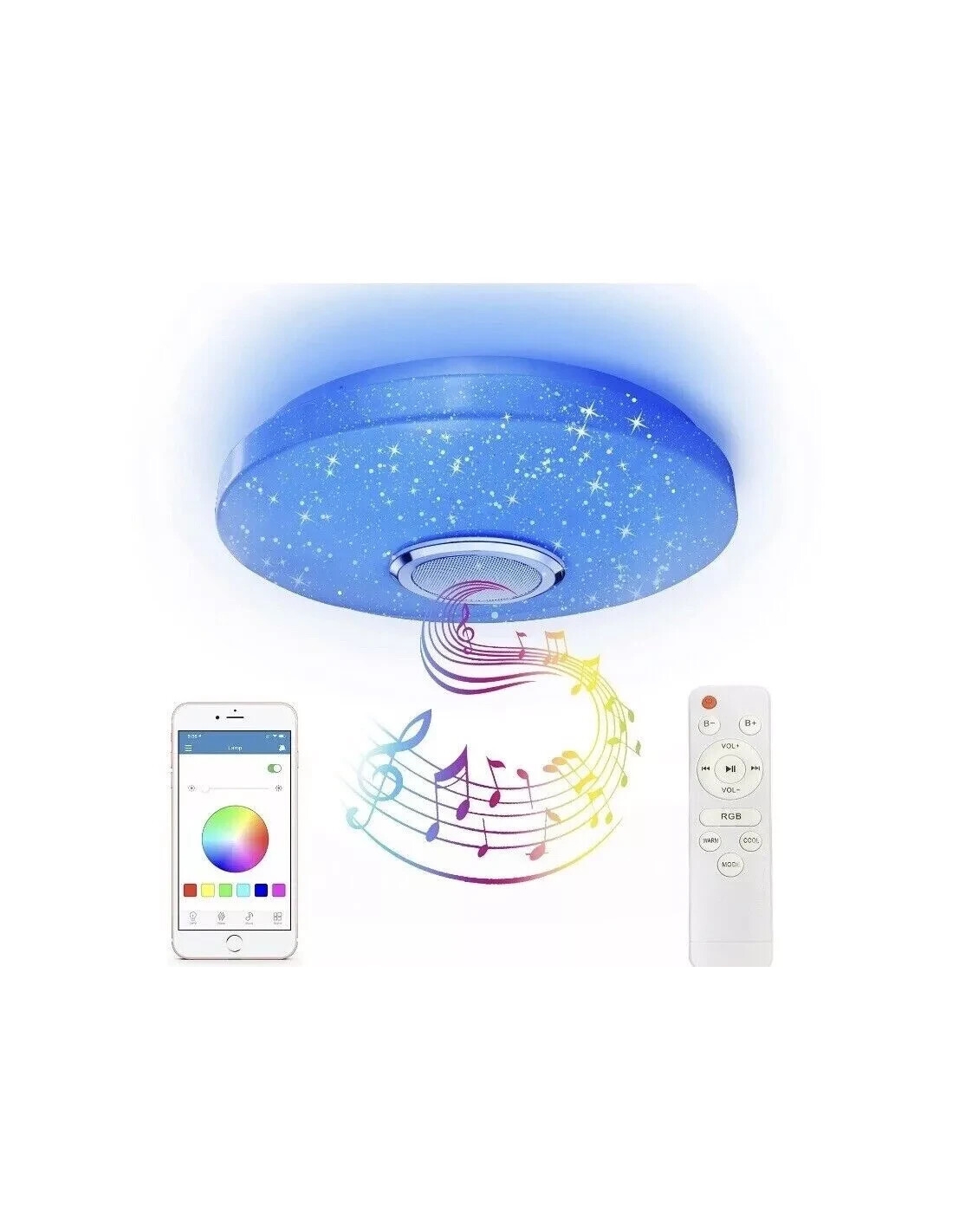 - Questa plafoniera a LED include un altoparlante Bluetooth integrato.Usa semplicemente il Bluetooth del tuo smartphone e puoi riprodurre la musica che ti piace dopo che la connessione è andata a buon fine. Fornisce anche effetti sonori e modalità di effetti di luce, portando un'atmosfera rilassata e gioiosa per riunioni di famiglia, feste di amici, feste di compleanno, ecc.