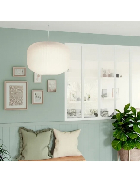 INSPIRE BELLUNA Lampadario Moderno bianco paralume E27 Ø35cm vetro e acciaio.