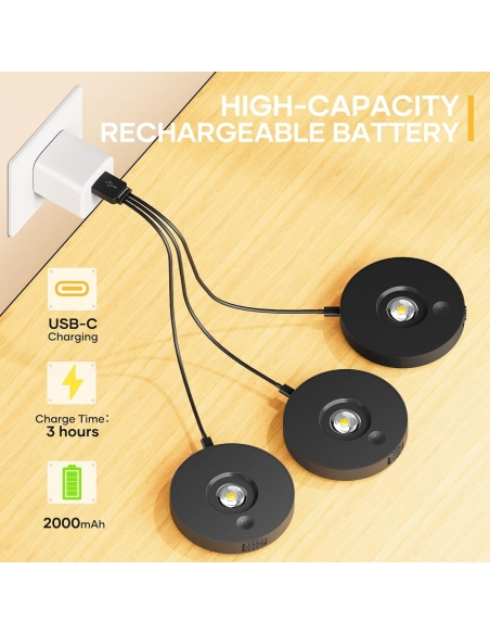 - [Ricaricabile ed efficiente dal punto di vista energetico]: la nostra illuminazione a LED per mobili è dotata di una batteria al litio da 2000 mAh e di un cavo USB-C ricaricabile 3 in 1, molto più efficiente dal punto di vista energetico ed ecologico delle batterie AA. La luce LED da cucina sottopensile può durare fino a 10 ore dopo una carica completa di 3 ore al livello di luminosità più basso possibile e sono progettati per consumare la minima quantità di energia mentre la massima quantità di luminosità fornisce per garantire le prestazioni a lungo termine dell'illuminazione indiretta e ridurre la frequenza di ricarica