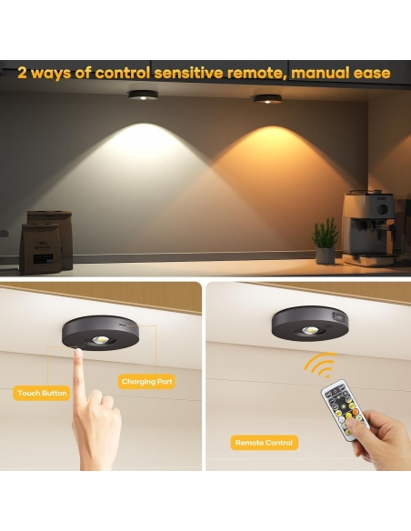 Faretti LED ricaricabili tramite USB Feliigo, batteria, luce sottopensile, illuminazione a LED per mobili con telecomando, 3 temperature di colore, luce sottopensile a LED, illuminazione wireless per vetrine a LED con temporizzazione