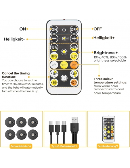 - Riceverai: 6 luci LED sottopensile, 6 staffe di montaggio in acciaio inox, 1 telecomando, 1 cavo di ricarica 3 in 1, 1 manuale utente (lingua inglese non garantita). Offriamo un servizio clienti 24 ore su 24 e una garanzia a vita. Per ulteriori domande sui nostri prodotti, non esitare a contattarci