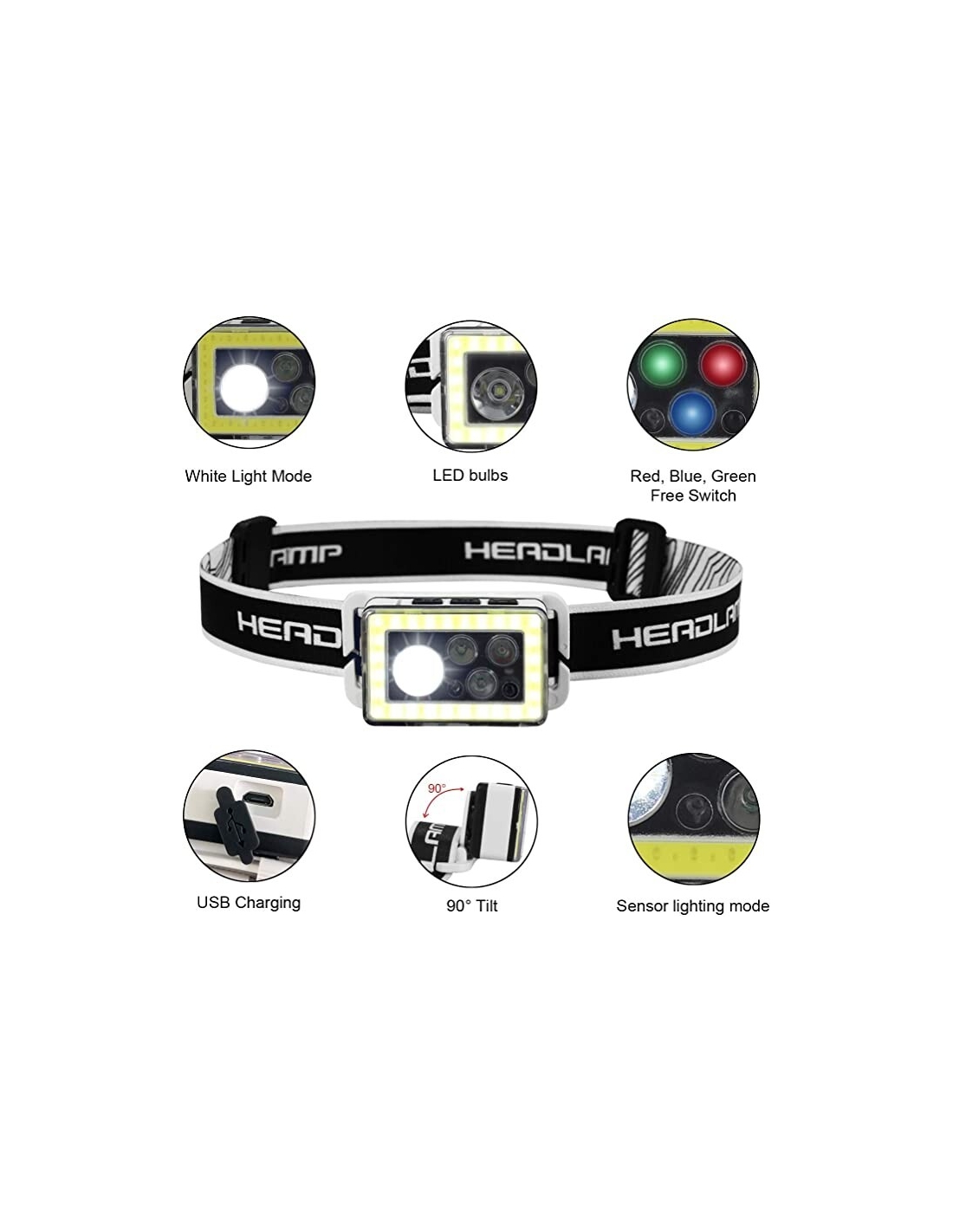 Lampada frontale a LED ricaricabile USB ultra luminosa con sensore di movimento
