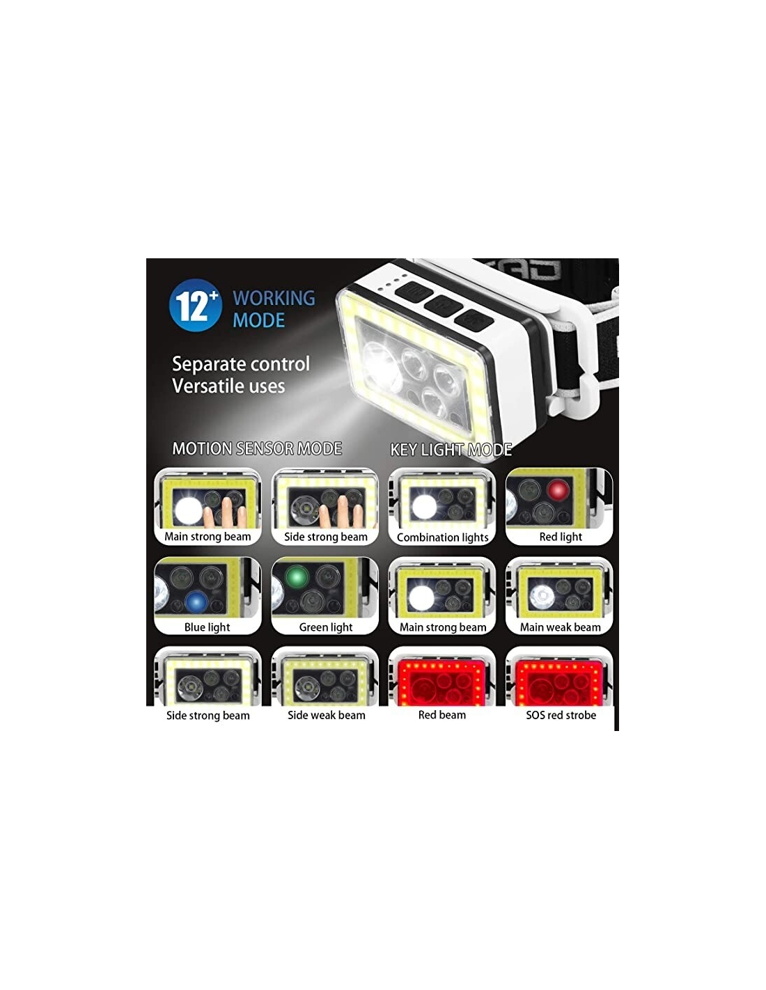 【Modalità di induzione】 : Utilizza la tecnologia di rilevamento avanzata. Quando la modalità di rilevamento è attivata, puoi accendere o spegnere liberamente la luce senza toccare l'interruttore a chiave. Ci sono luci per l'illuminazione a distanza ravvicinata e luci per l'illuminazione a lunga distanza, in questo modo non devi preoccuparti sporcarsi il faro anche se le mani sono sporche