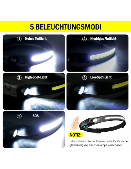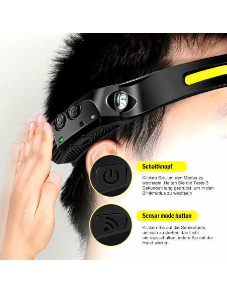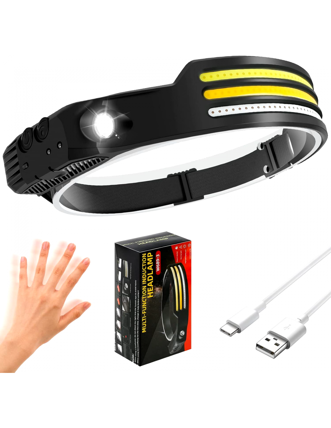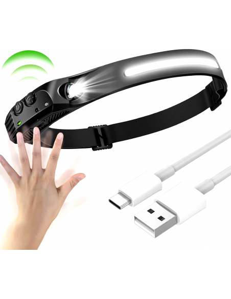 Lampada Frontale Torcia LED Ricaricabile USB con Sensore di Movimento