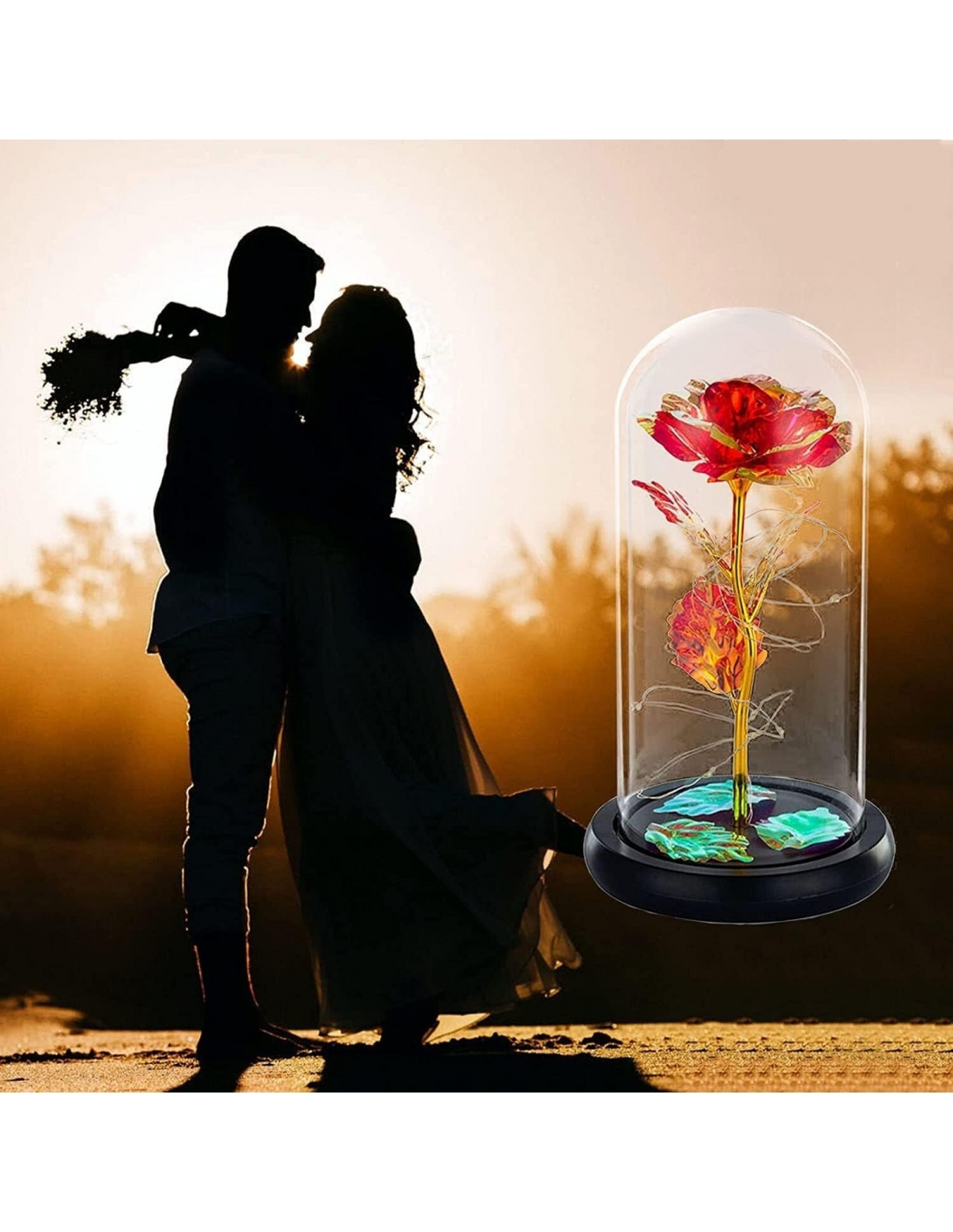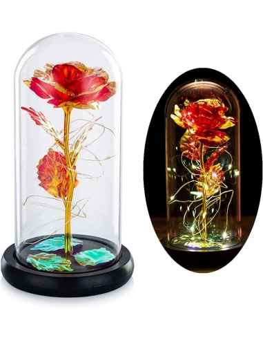 Lampada a forma di rosa fiore eterno, rosa in cupola di vetro