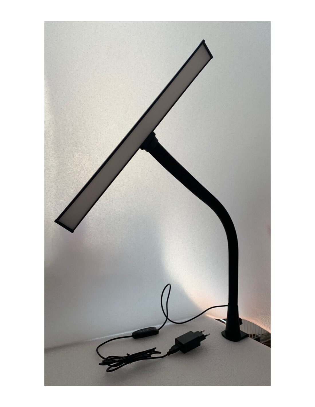 - Un'eccellente sorgente luminosa a LED da 10 watt, 1000 lumen (max). Con un CRI di 90, offre un'ottima nitidezza dei colori, senza abbagliamento e protezione degli occhi. La lampada è dotata di un paralume largo 40 cm e di una testa regolabile che garantisce una dispersione uniforme della luce su ampie superfici, consentendo di indirizzare la luce esattamente dove serve come lampada da lavoro.