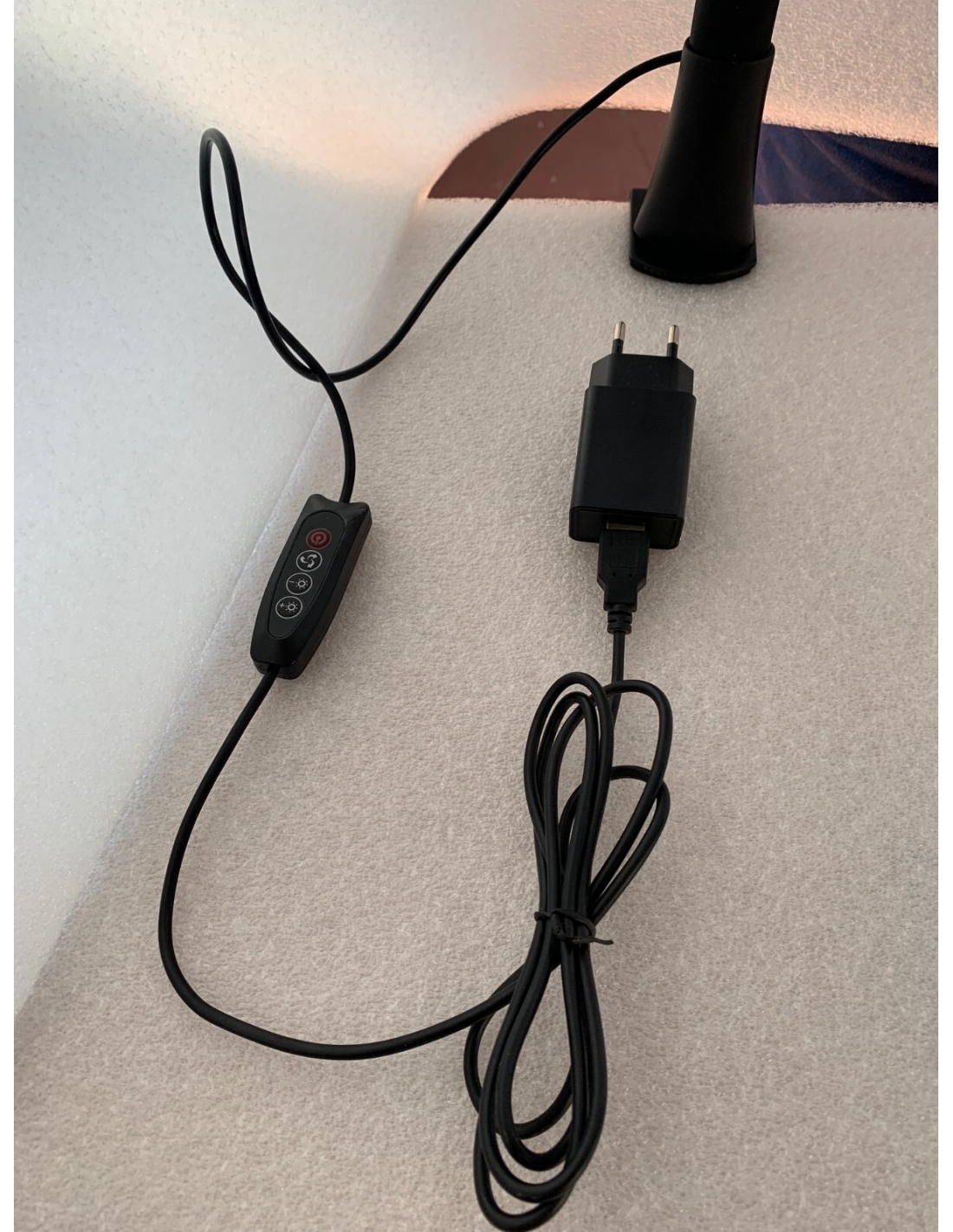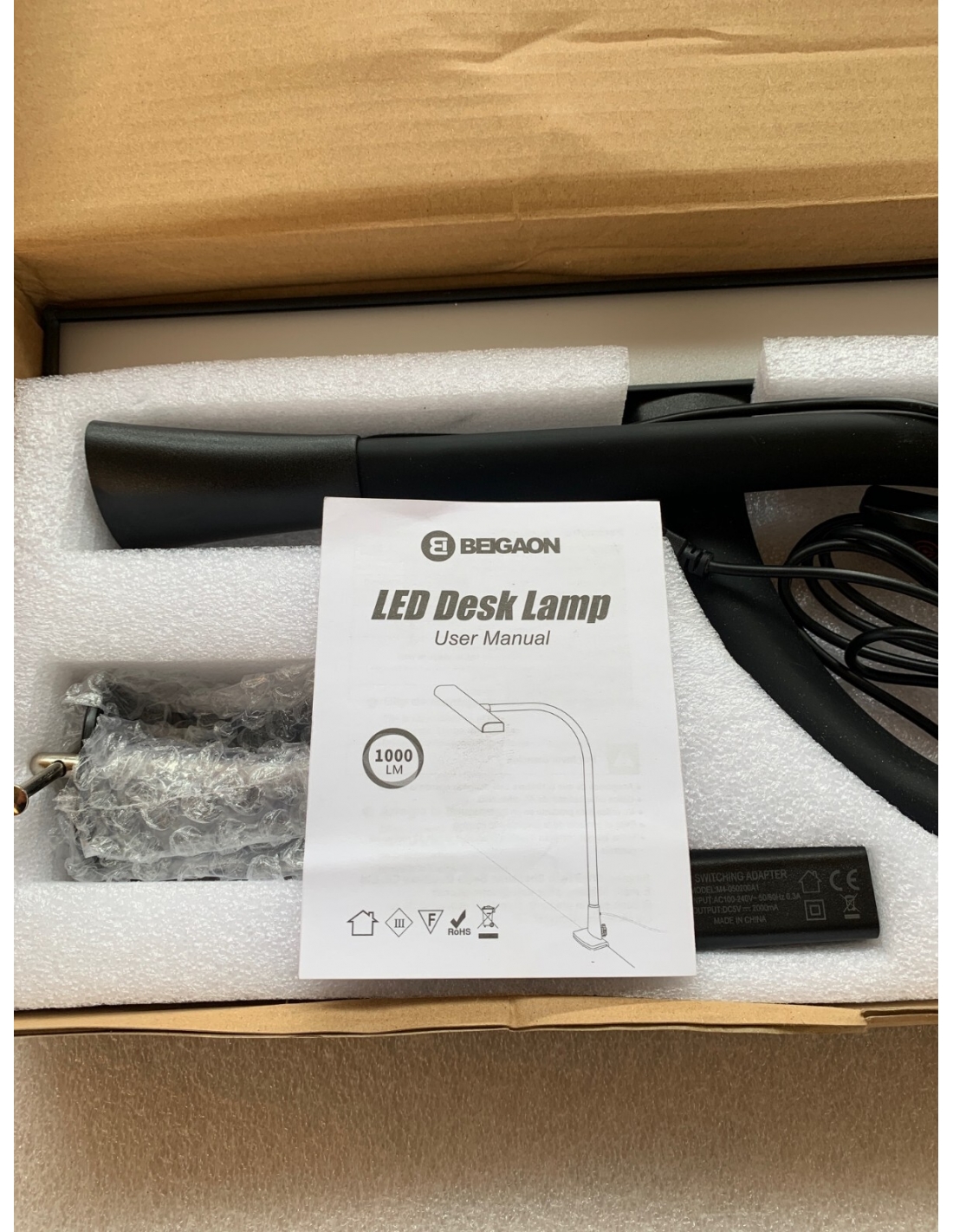 - Una lampada da scrivania a collo d'oca con cavo USB (lunghezza: 1,8 m), morsetto metallico da tavolo, adattatore di alimentazione 5V/2A, manuale d'uso.